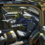 PV5 WKNDR CONCEPT EV VAN – is based on Kia’s recently debuted line of EV PBVs, or Purpose Beyond Vehicles, designed for small business and delivery functionality. It is a highly capable van allowing expression of your lifestyle wherever it may take you. Lifted and equipped with off road tires, it is an ideal escape pod for extended weekends in nature. The PV5 WKNDR EV VAN features a highly flexible and adaptable modular interior that can be easily and efficiently customized to maximize space and function – akin to a Swiss Army Knife on wheels. The van’s “Gear Head” feature is the first-of-its-kind storage solution that provides an off-board, sheltered storage space for gear when the vehicle is stationary, allowing for maximum utilization of interior space while still offering easy access to gear outside.