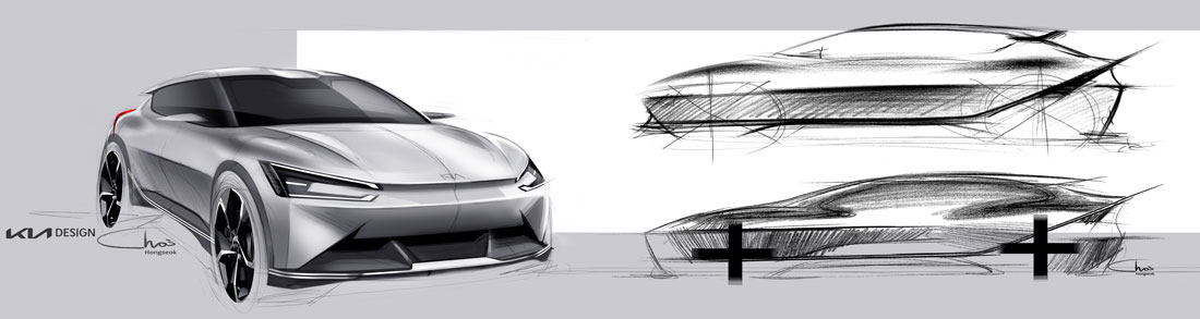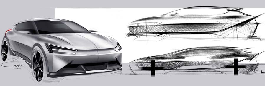 As said in the previous reviews, I like the overal proportion, stance and look of the EV 6 a lot, and from the aboce sketches you can clearly see the dynamic style of them. I still maintain though that the front end design doesn’t really fit well within the Kia brand identity. That could have been resolved better.
