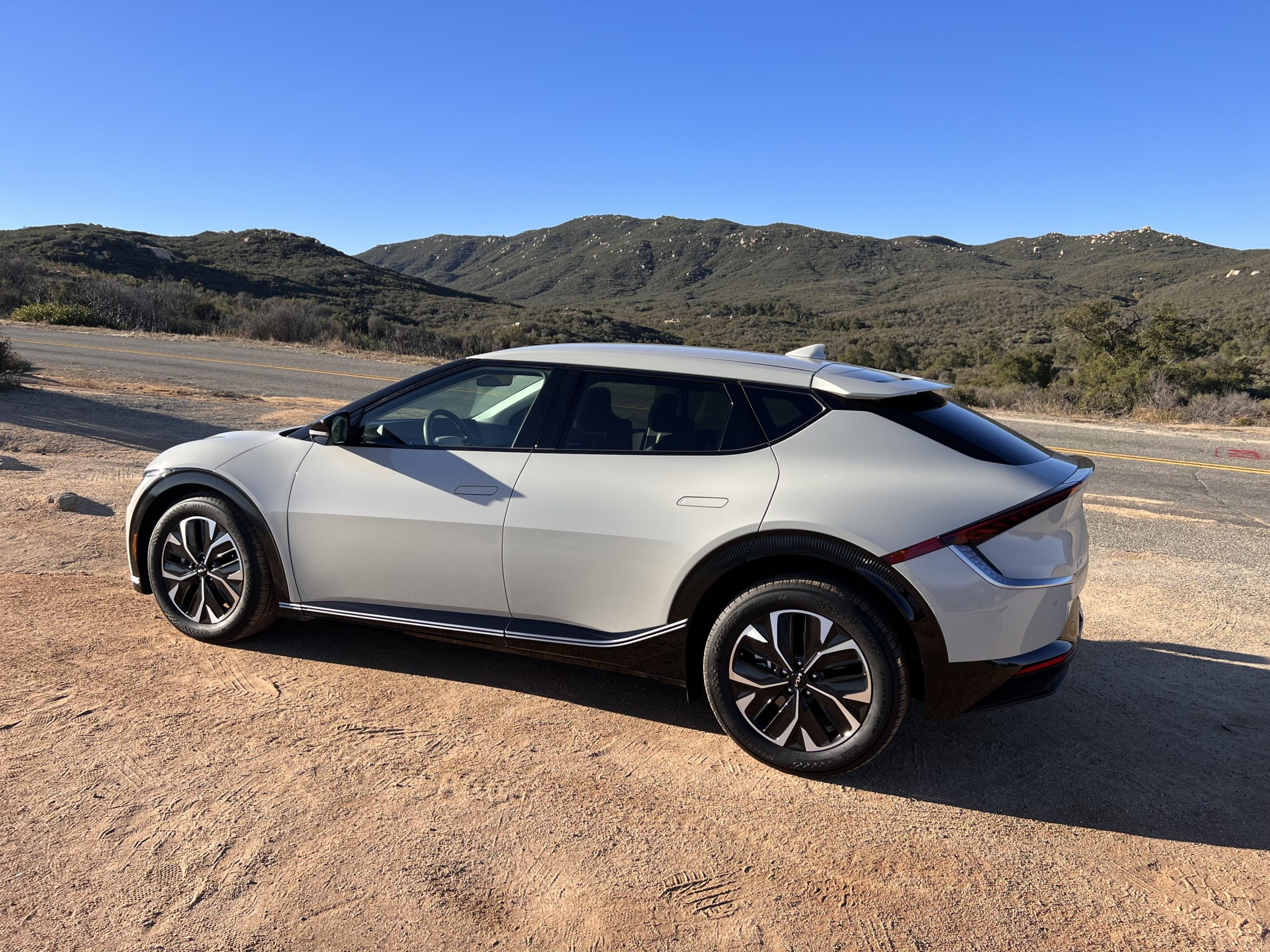 The third Kia EV 6 that I experienced over recent weeks was the US version Wind. This is the most downmarket version of the Kia EV 6 available in the US, price as tested still $48,710. Although the car looks pretty much the same as the previously shown versions there are some features turned off to make this a cheaper version. Among these is the door openers that now do not pop out when you unlock the car. I thought this was a mistake but apparently this belongs to the goody bag that’s left off. I tell you, it is irritating. It also does not come with any charging cable at all. You don’t need when you go to a charging station, but for home in-garage charging you need that. $180 at Amazon, but still a miss.