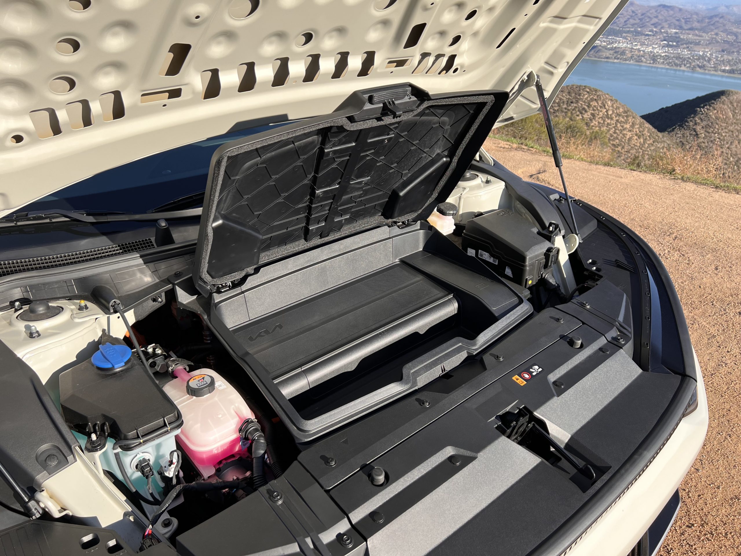 I’ve found that I have plenty of space inside the EV 6, as a driver, as front passenger and even as rear passenger. Ease of access and egress is plenty as well, which, with my height is not always a given. The center console design left me wanting and wondering though. True, there is a flat floor, but in front of the center console you don’t really need to leave that space open for no good reason. You’re not going to play footsie with your front passenger while driving, nor is she or he going to be operating your throttle pedal. Initially unaware of this design feature, I entered the vehicle with the paperwork from the funeral mass I had attended and quickly wanted to dispose of these to follow the funeral car, but it all landed on the floor…. That was stupid. Plain stupid!!