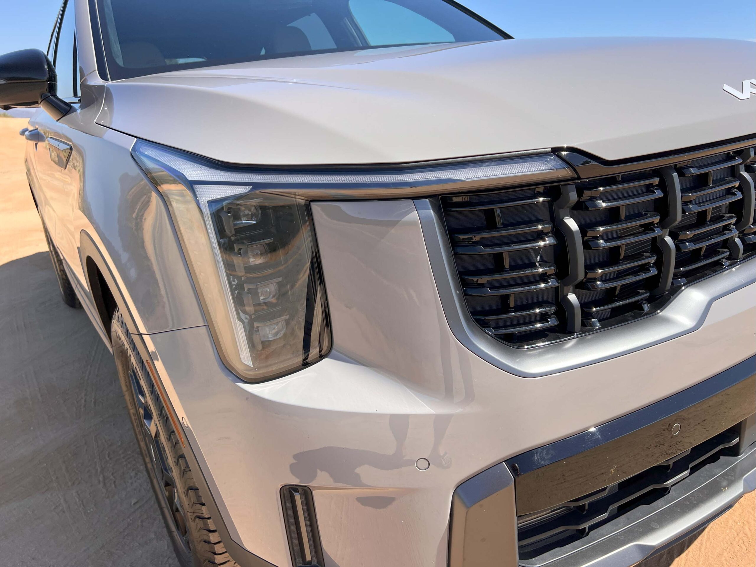 The Sorento’s exterior design is characterized by clean lines and bold proportions. The signature “tiger nose” grille, albeit softened for a more refined look, remains a prominent design element. The LED headlights and taillights are sharp and modern, adding to the SUV’s overall sophistication. The X-Pro’s blacked-out accents provide a contrasting element, giving the vehicle a purposeful stance.