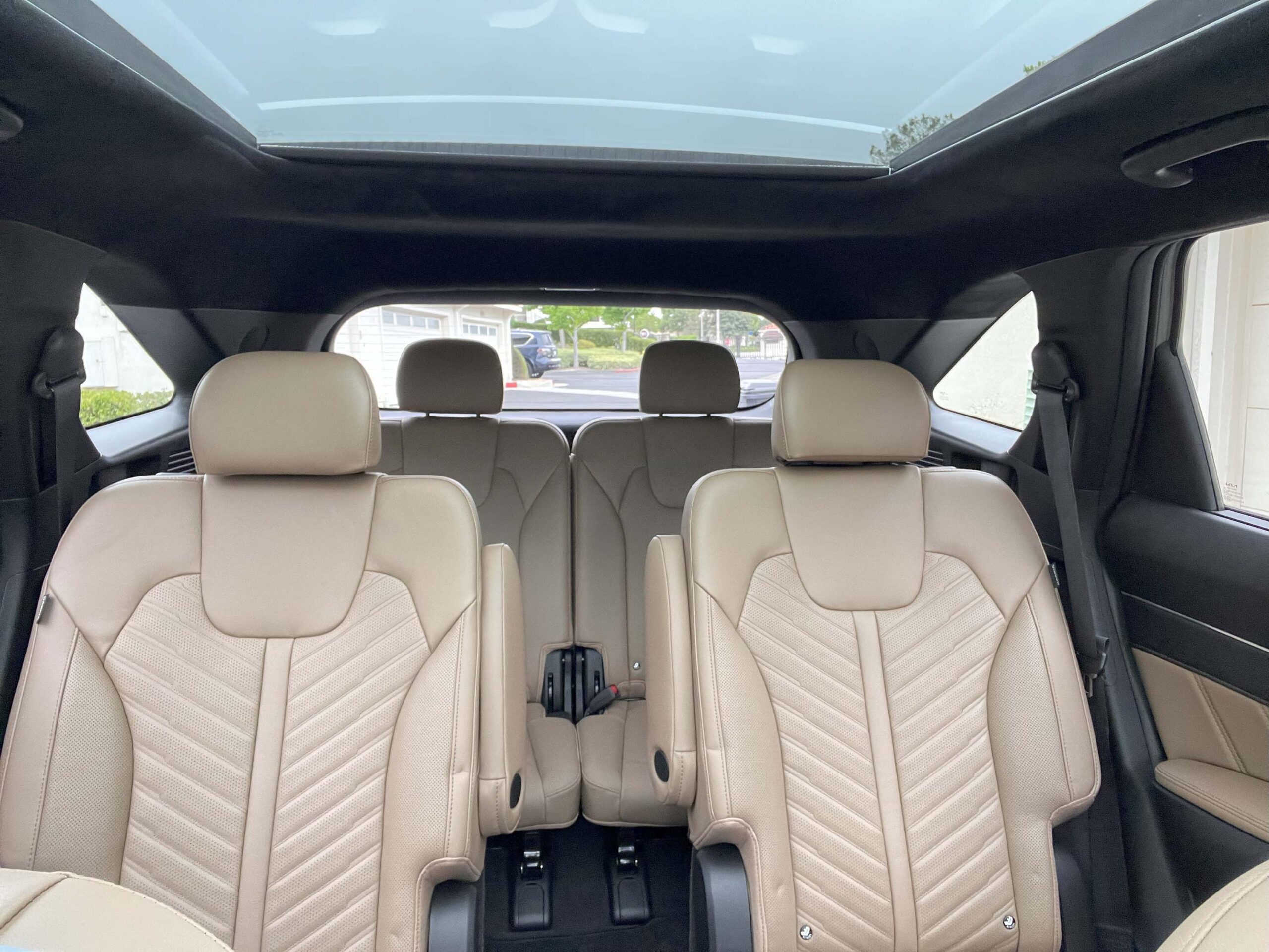 While the third-row seats are best suited for children or occasional use by adults, the cargo space with all seats up remains surprisingly usable for everyday items. The split-folding rear seats offer flexibility for accommodating passengers and cargo simultaneously.
