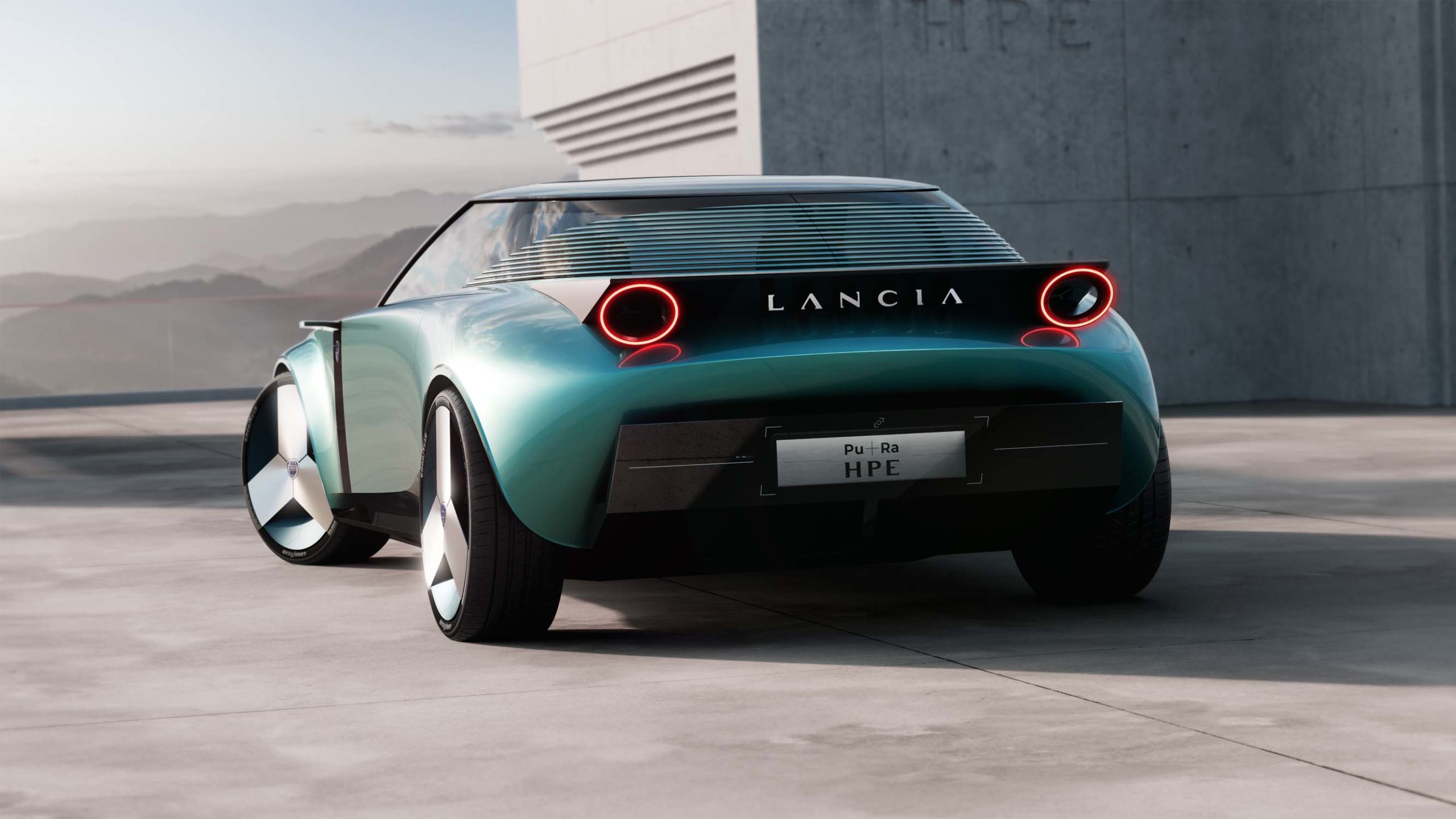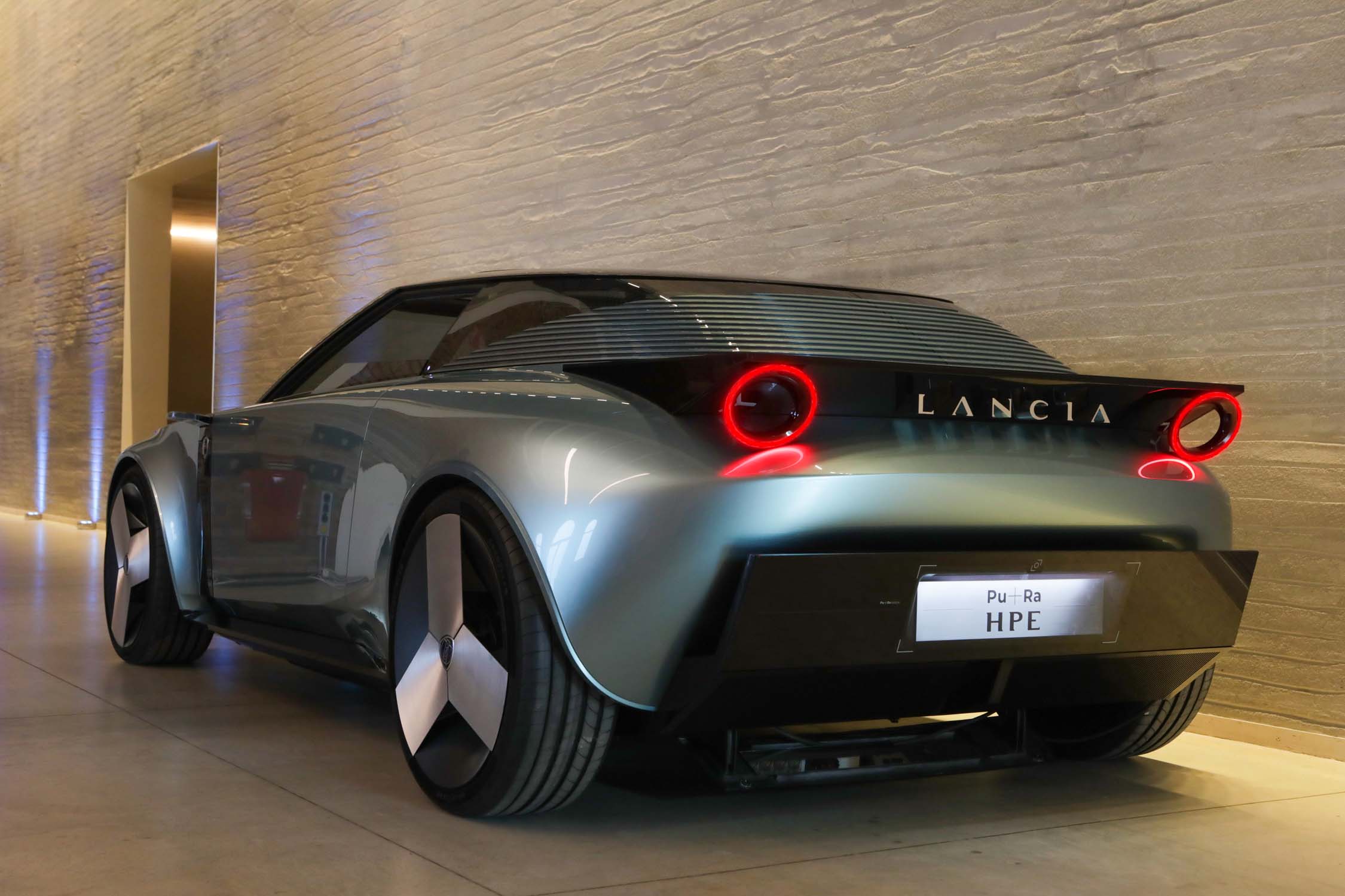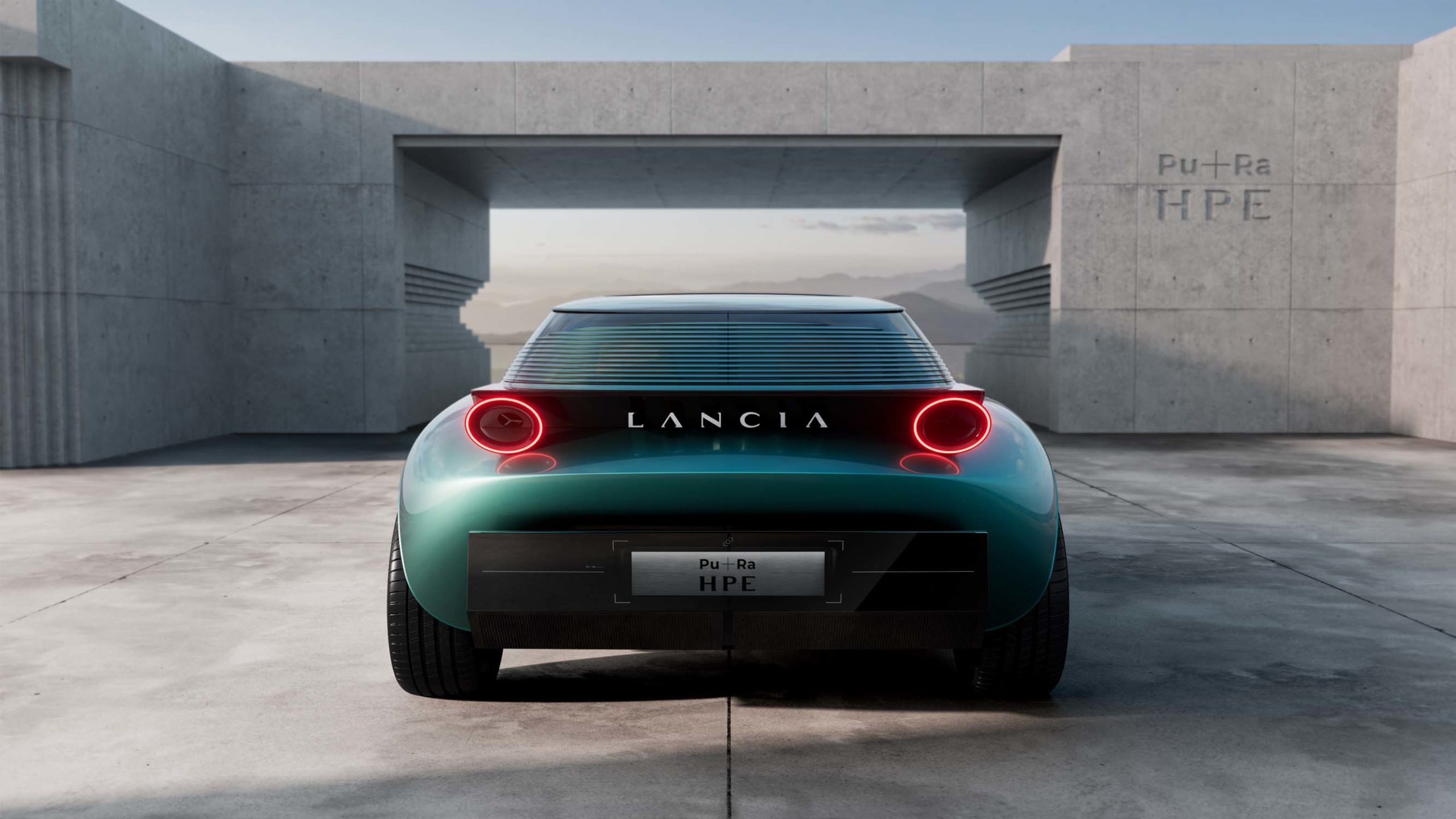 The dialog between past and future can also be found in the rear, where we can see the iconic round lights, inspired by the brand’s bluntest and most radical spirit, while a clear reference is further made to the legendary Lancia Stratos, with the iconic new Lancia lettering placed between the lights.