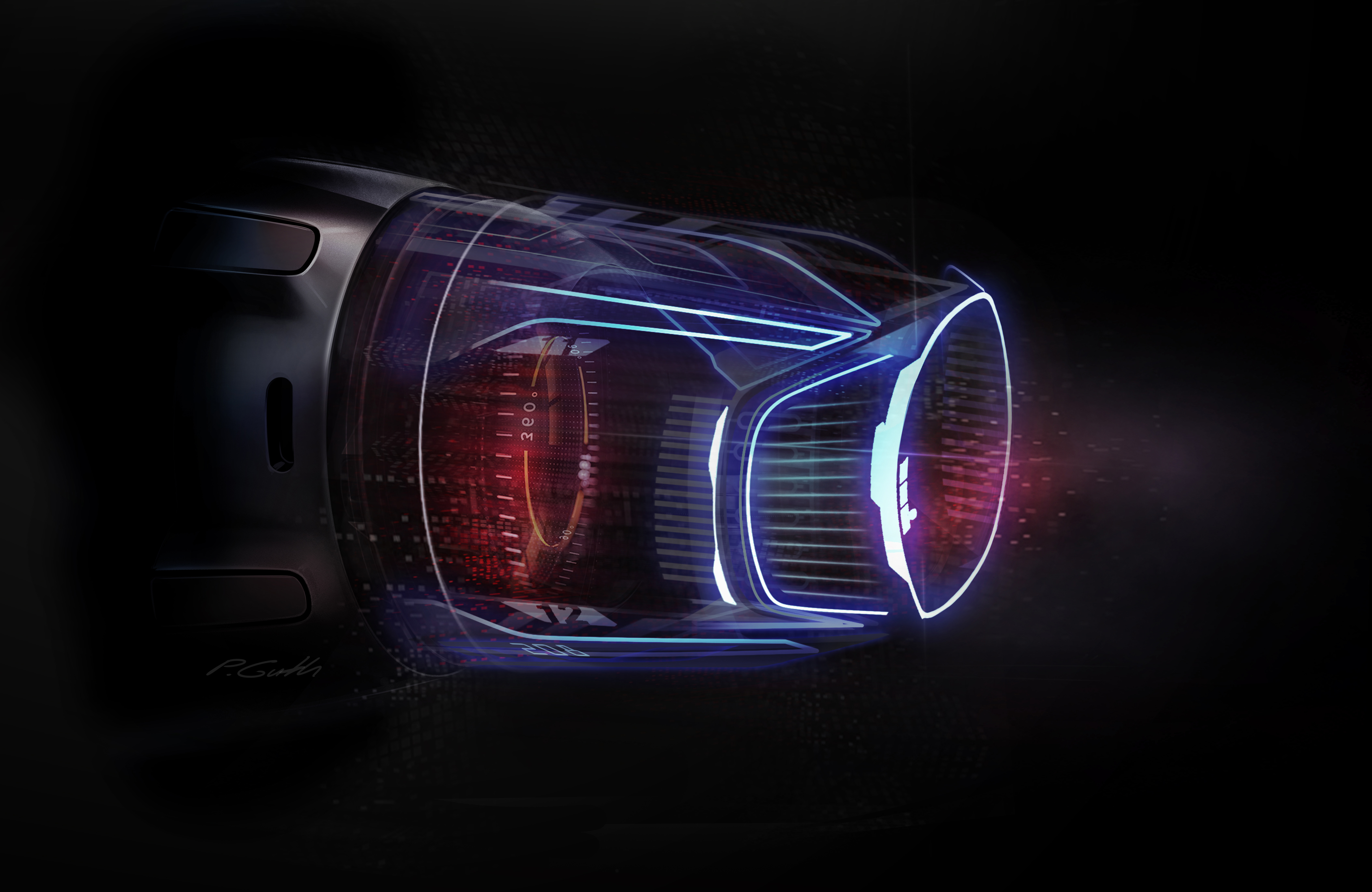 In the process these so-called holographic lens modules rotate at well over 2000 rpm. This high rotational speed suggests a static image to the human eye, and with specific actuation it even allows individual holographic images to be generated. The main module and circuit boards become practically invisible thanks to the high rpm, causing the 500 LEDs per headlamp to “float” in space. As each one of the less than one millimetre large high-performance LEDs is actuated individually, and can rotate at three different levels, the “floating” 3D impression is additionally reinforced.