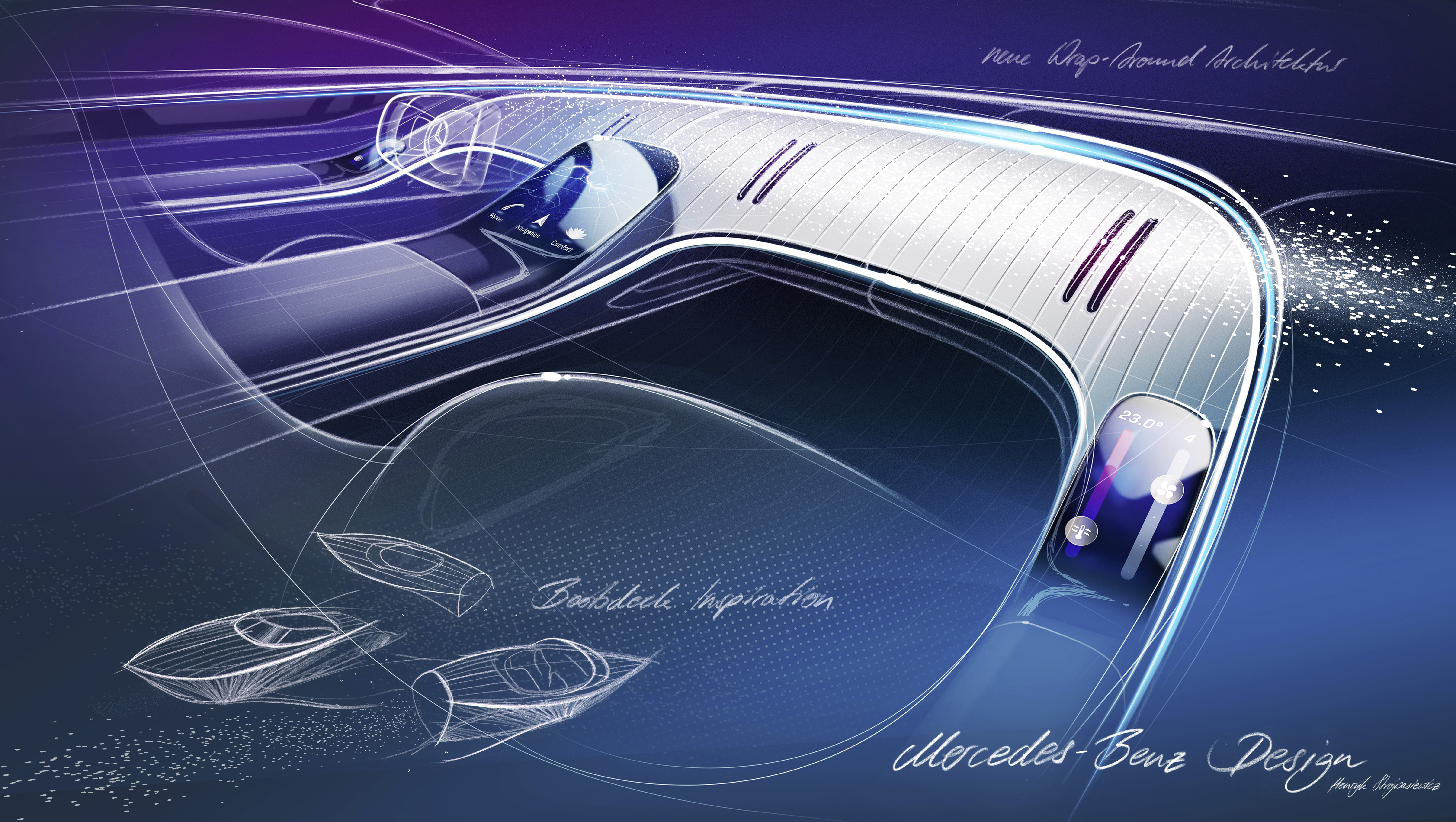 An integrated interior emerging from the form and organically enveloping the occupants is the new interpretation of the Mercedes-Benz wrap-around effect.