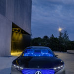 However, the design goes another step further. Thanks to seamless integration of the lights, the VISION EQS becomes a communicative vehicle, a “cooperative car”. The 360-degree exterior lightbelt, the digital LED matrix grille and the DIGITAL LIGHT headlamps allow interaction between the vehicle and its surroundings.