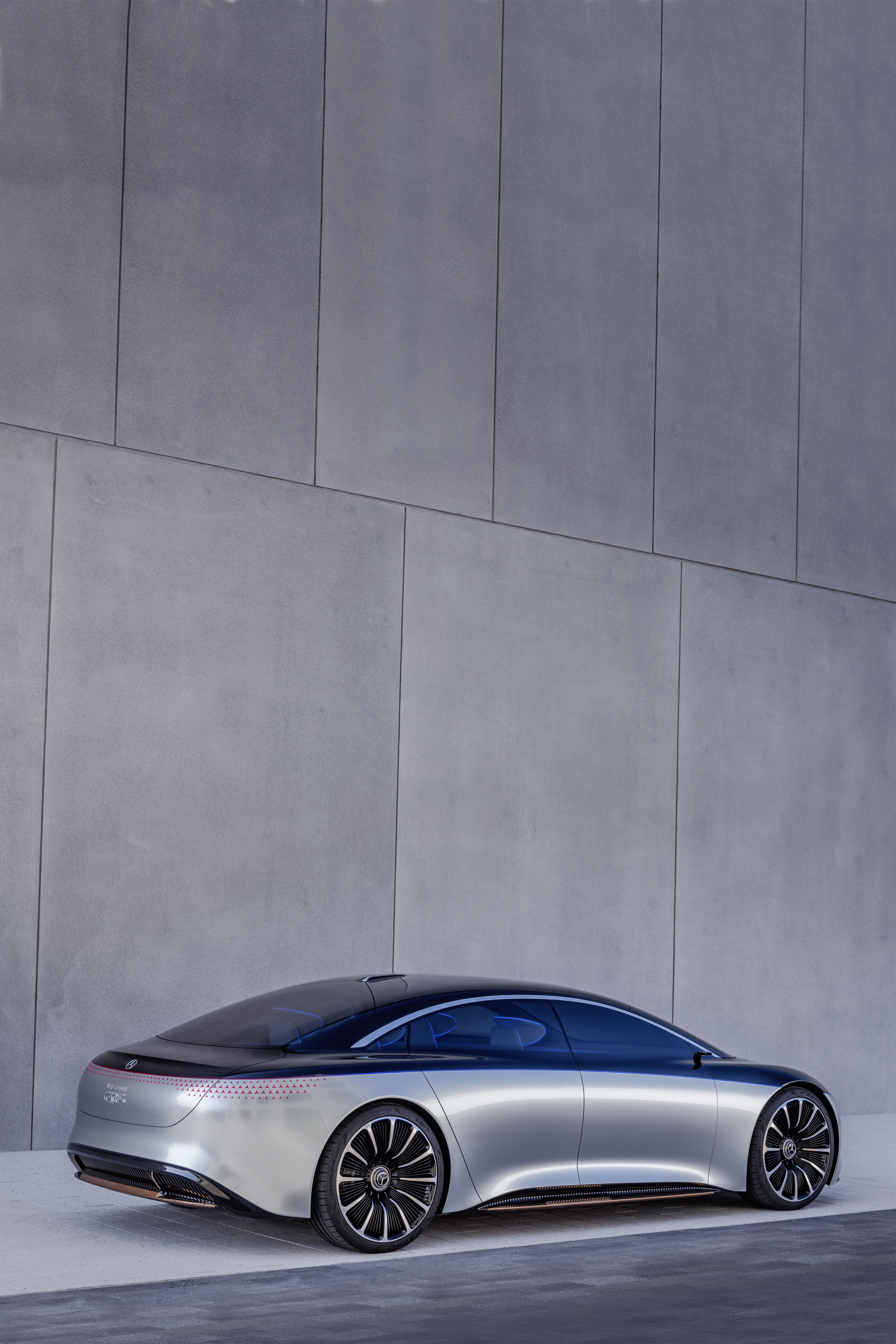 Mercedes-Benz VISION EQS, IAA 2019, der VISION EQS zeigt einen Ausblick auf ein Konzept eines vollelektrischen Fahrzeugs der Luxusklasse. Mercedes-Benz VISION EQS, IAA 2019, the VISION EQS provides an outlook on a concept for a fully-electric vehicle in the luxury class.
