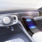 For the first time the entire dashboard blends with the body of the front trim section to form an interior sculpture. With its deep and open spatial architecture, the cockpit of the VISION EQS envelops the occupants like the deck of a boat. The fully integrated, embracing overall sculpture consisting of the combined dashboard, centre console and armrests floats above the generous interior and for the first time gives an outlook on the interiors of future luxury saloons by the brand.