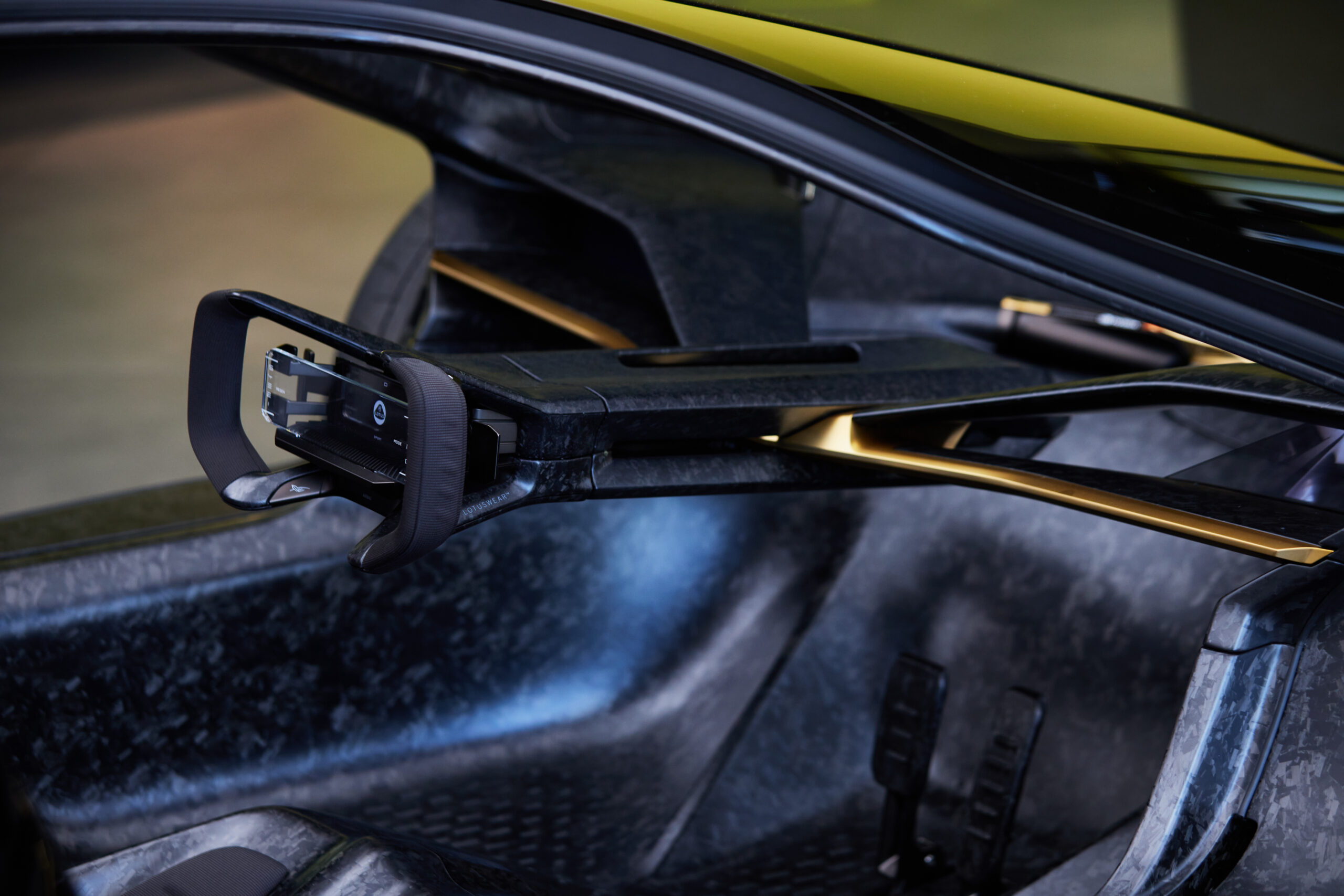 Furthermore, Theory 1 is a three-seater sports car which has a central driving position, with a passenger on each side, nestled behind the driver. Inspired by motorsports, the driver’s seat in the middle of the car provides the driver with the best possible visibility of the road ahead, as well as easy access to all controls.