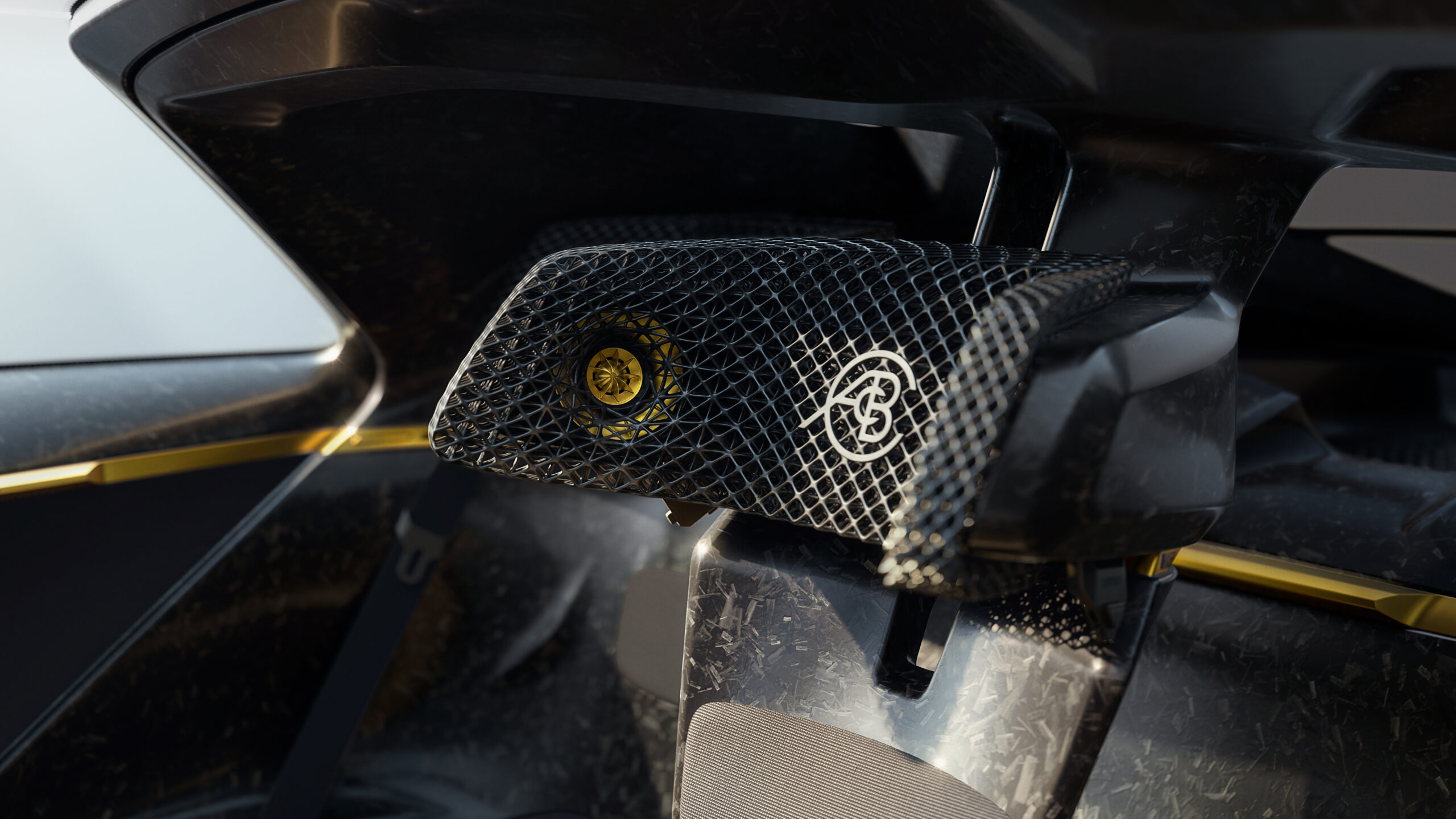 To ensure every occupant can enjoy a truly immersive and unique audio experience, part of the headrest is a binaural audio system, which has been designed in collaboration with KEF. It offers individual bespoke soundscapes for each of the occupants, that are further enhanced by the subwoofer speaker located behind the driver seat. Occupants in the car can: