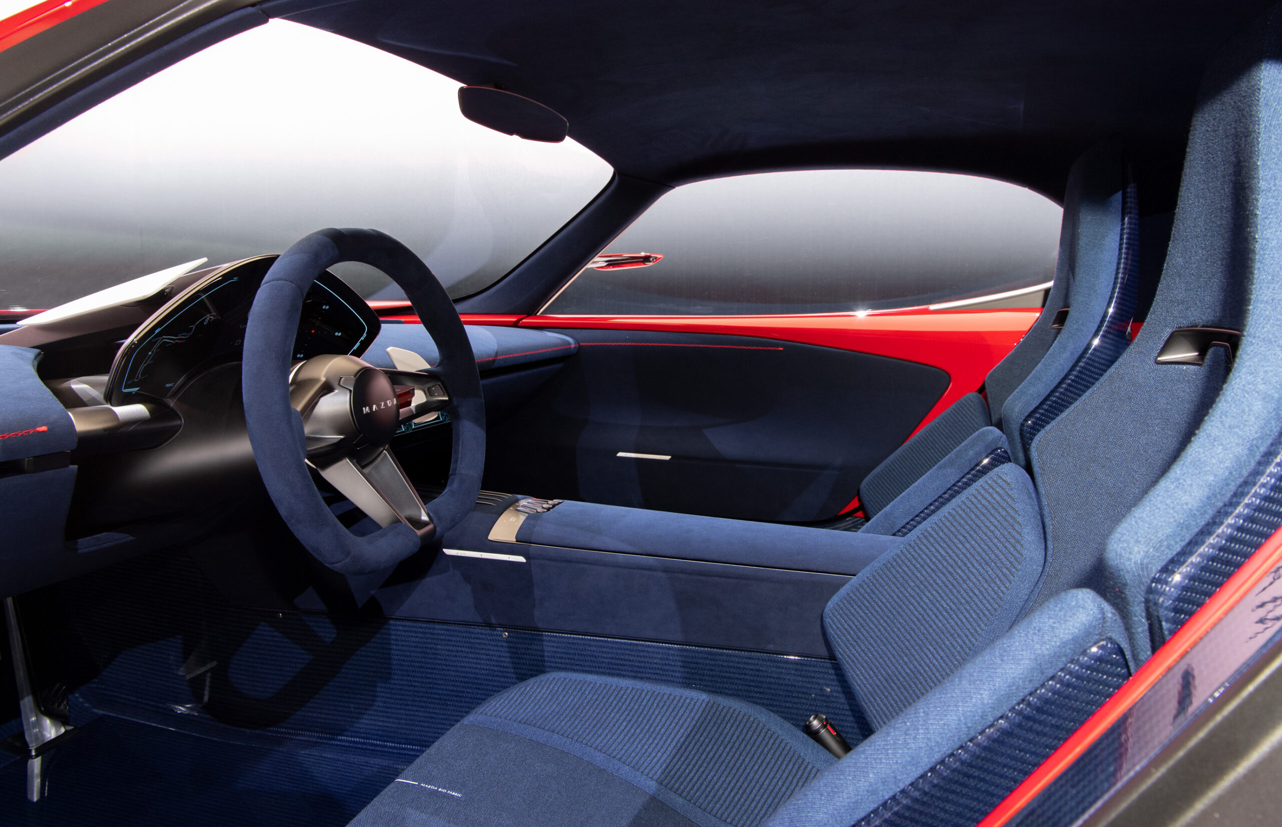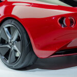 MAZDA ICONIC SP is a new type of compact sports car concept, designed to adopt to the new era and respond to the emotions of customers who “love cars” and “desire a car that simply embodies the joy of driving”. This powertrain features Mazda’s unique two-rotor rotary EV system, which remains compact and thus offers a high degree of layout flexibility, enabling the concept model to have a low center of gravity to enhance driving performance. Batteries are charged by recyclable energy source and the two-rotor rotary engine, used for power generation, is powered by carbon-neutral fuel. The vibrant red color of Viola Red, is a concept color created by overlaying Mazda’s corporate philosophy of “enrich life-in-motion for those we serve” based on Mazda’s desire to “cherish the color red.”
