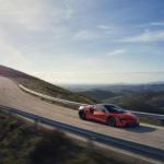 The innovative rear suspension system, which pairs a top upper wishbone with two lower links and a tie rod in front of the wheel center, maximizes vehicle stability and precision, and reduces understeer out of a corner while accelerating. The wider tires allow additional stability and better traction performance while the combination of a short wheelbase, E-diff and the physical downforce provided by the integrated rear spoiler and diffuser ensure both incredible agility at low speed and a high level of stability at high speed. The E-diff in particular increases performance and driver confidence when cornering, enhancing traction and reducing levels of understeer.
