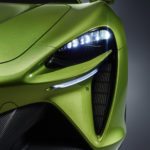 The engineering artistry beneath the Artura’s skin is complemented by its exterior design. The low-nose, cab-forward, high-tail stance is pure supercar, the drama underlined by the signature McLaren dihedral doors – which open closer to the body and house mirrors that fold in more tightly – and further enhanced by the short wheelbase and low stance.