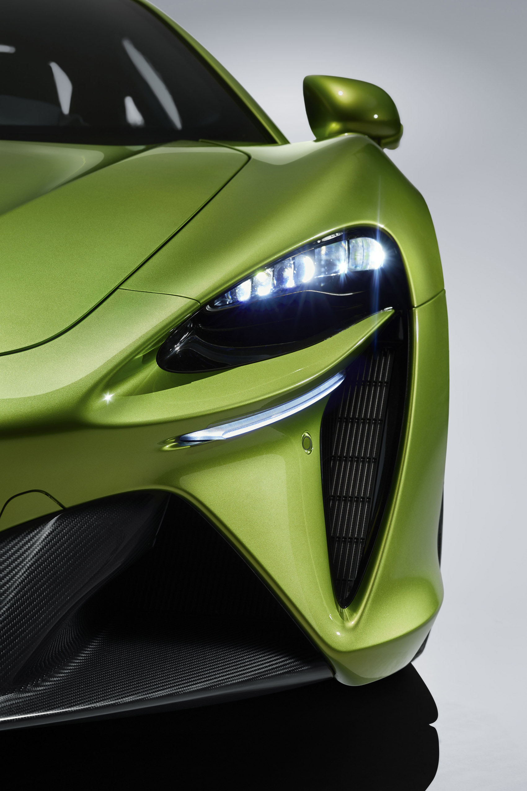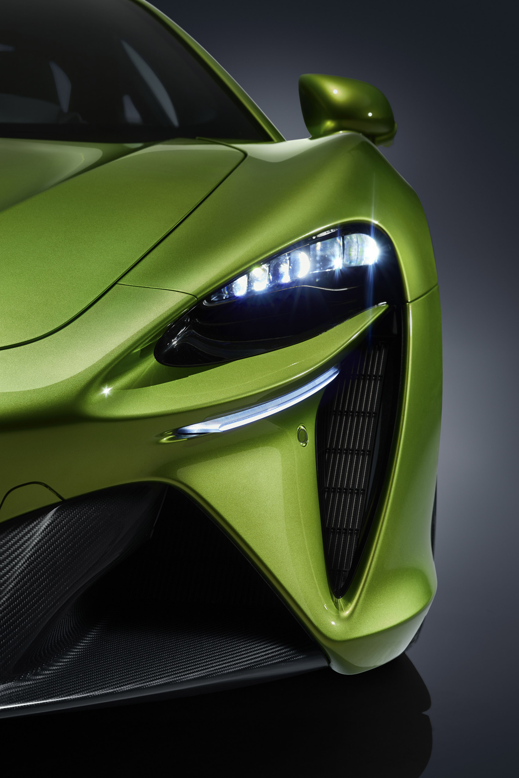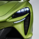 The overall effect gives the Artura an almost ‘shrink-wrapped’ appearance, evolving a McLaren design approach seen in recent models to a new level. The lithe, technical sculpture has only minimal body shutlines and panel joints, assisted by features such as an entire rear clamshell engineered and superformed as one panel. The shape of the Artura, sculpted to optimize performance and manage airflow for aerodynamic performance and cooling, is driven by the McLaren design principle of ‘everything for a reason’ that is in evidence throughout the car. The center of the front splitter is an example of this, being the intake for the eHVAC system and also housing the front-mounted radar that forms part of the optional ADAS package.