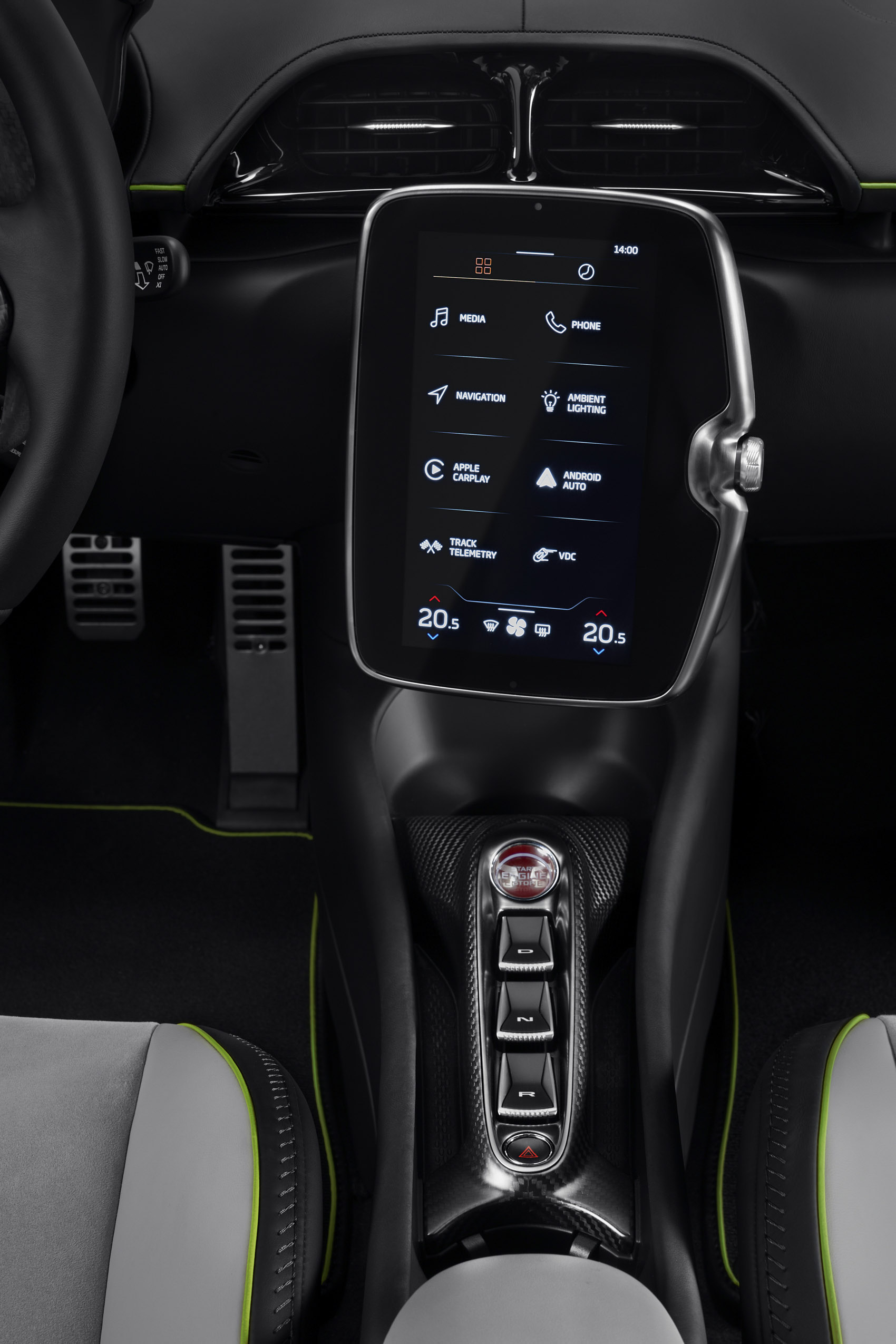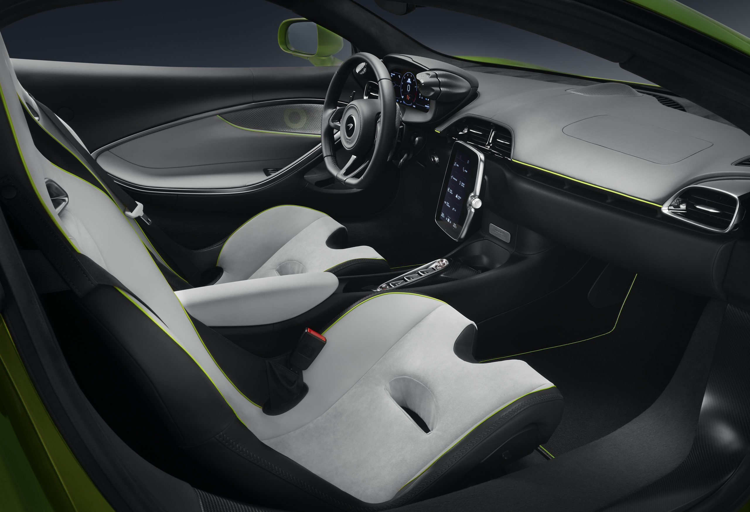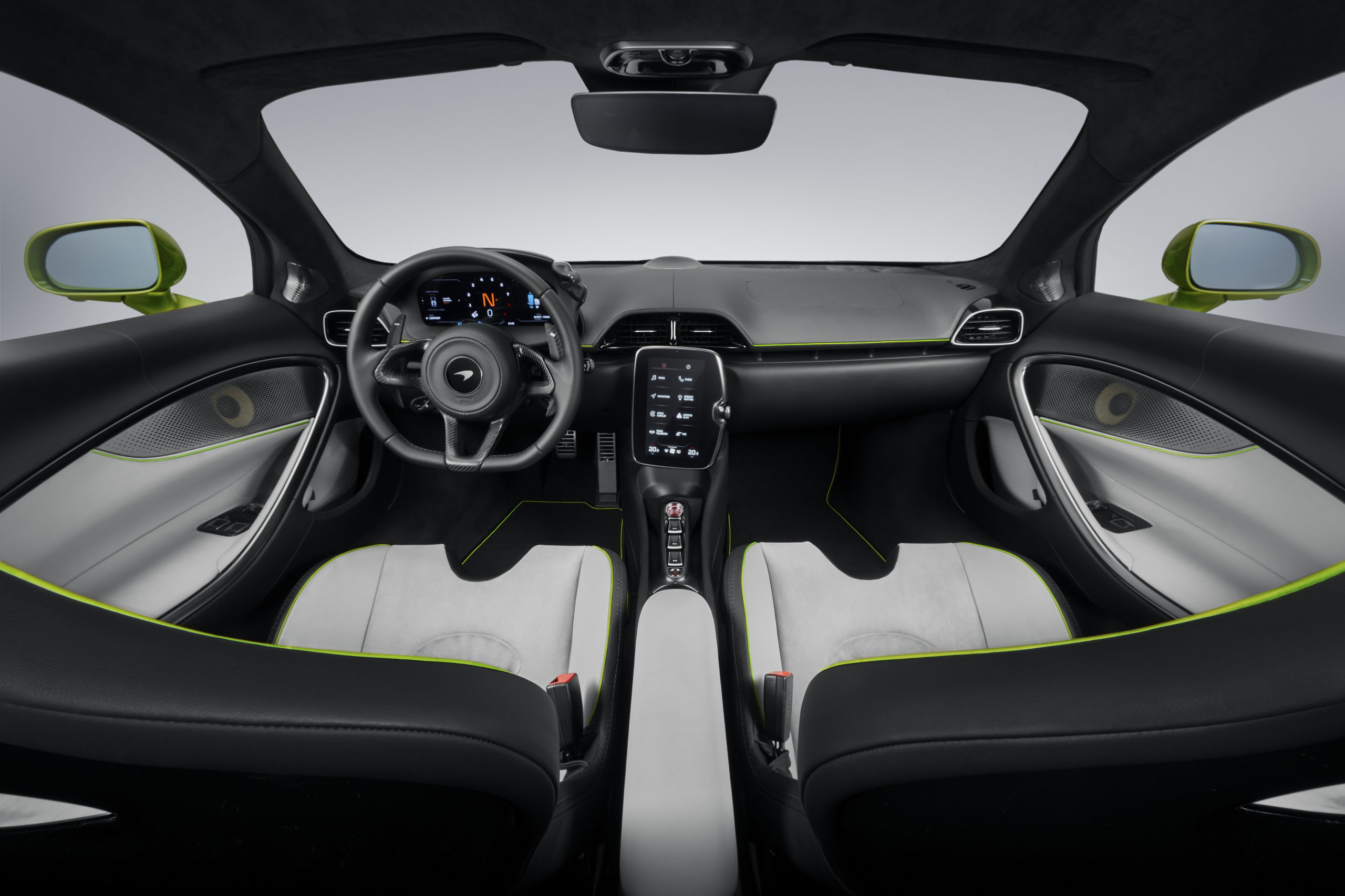 The seats locate in an ergonomically optimized cockpit, its carbon fibre shell combining with slim facia and doors to allow a 97.5th percentile (6ft 4in) driver to stretch out with generous knee- and leg-room, even with the backrest significantly reclined. Shoulder room is equally capacious, allowing a driver to get appropriately comfortable to enjoy the Artura’s performance and dynamic abilities.