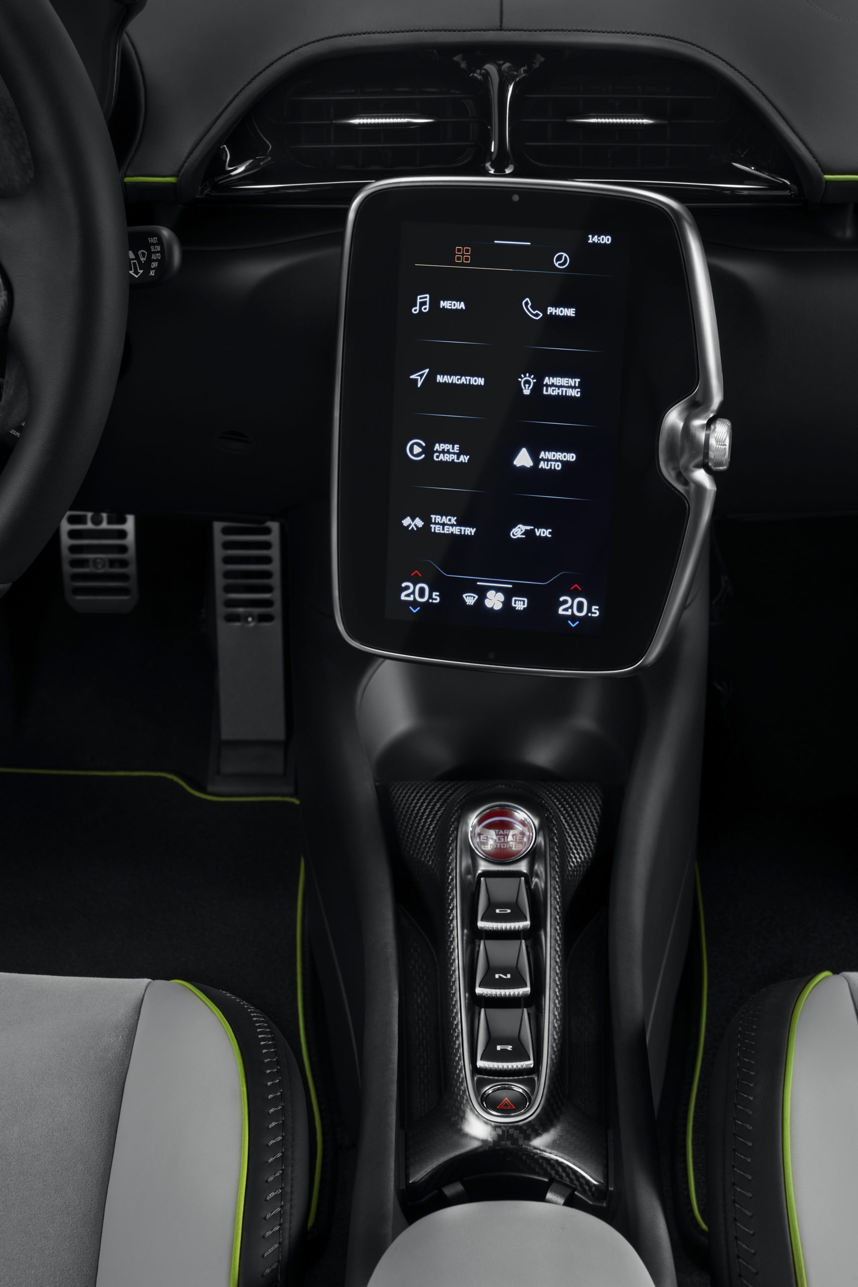 Dynamic precision is additionally enhanced by Pirelli Cyber Tyre® technology. Comprising hardware and software integrated with the Artura’s electronic systems and featuring an electronic ‘chip’ inside each tire, Pirelli Cyber Tyre® generates real-time data and relays it to the car’s stability control systems to optimize tire performance.