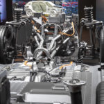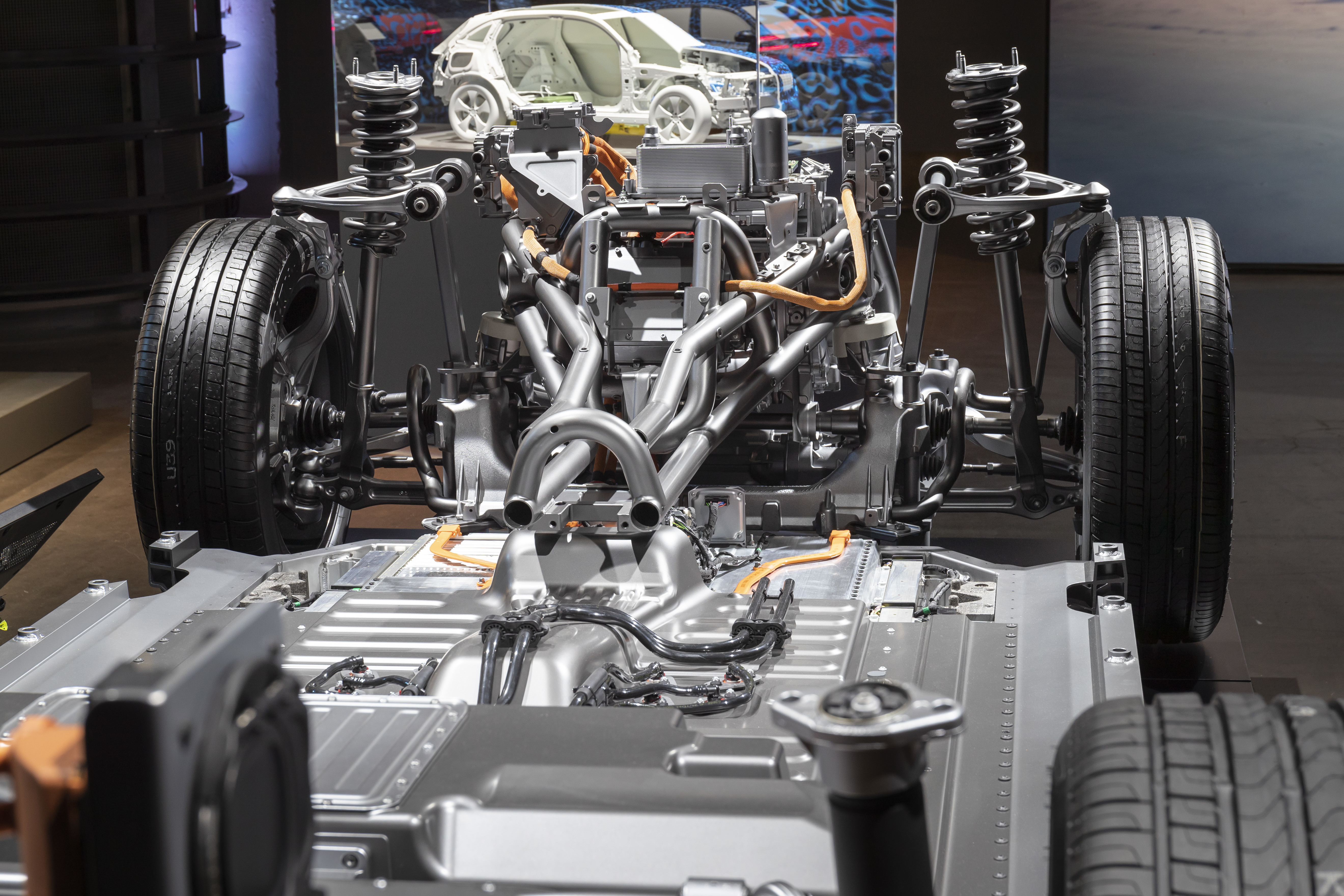 To reduce power consumption and increase dynamism, the electric drivetrains are configured differently: the front electric motor is optimised for best possible efficiency in the low to medium load range, while the rear one determines dynamism. Together, they generate an output of 300 kW and a maximum torque of 765 Nm.