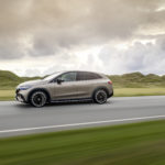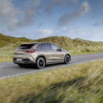 The EQE SUV shares some aerodynamic measures with its model brothers. The underbody with its numerous aerodynamic details plays a central role in a very good Cd value from 0.255, which was achieved despite the large load volume and short rear overhang. But the dimensional concept with the flat windscreen, sweeping roof line and indents were also important factors.