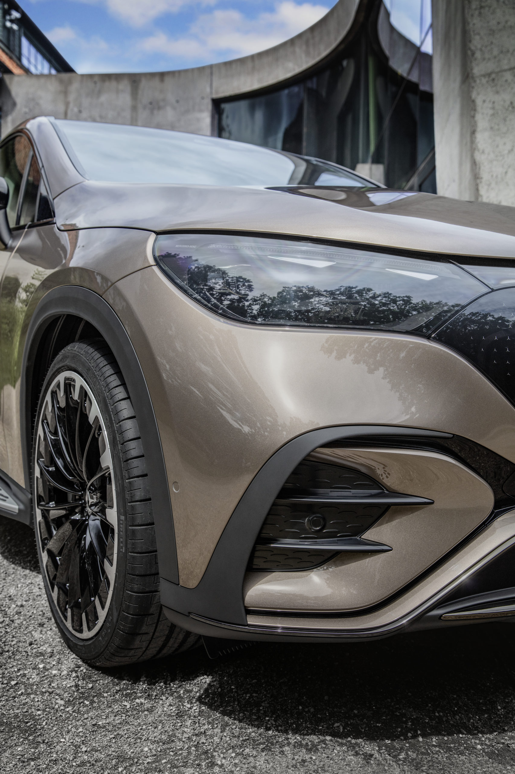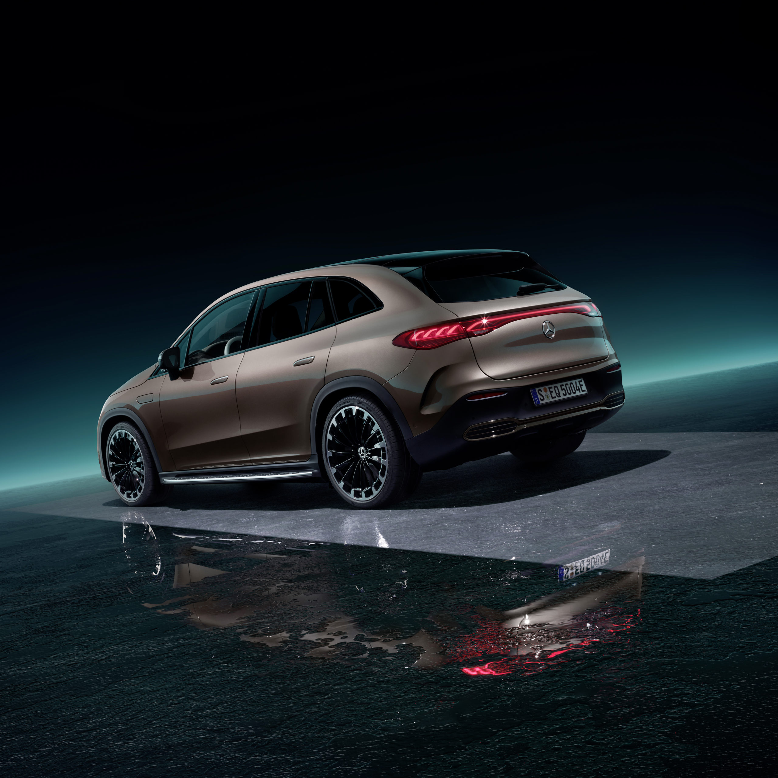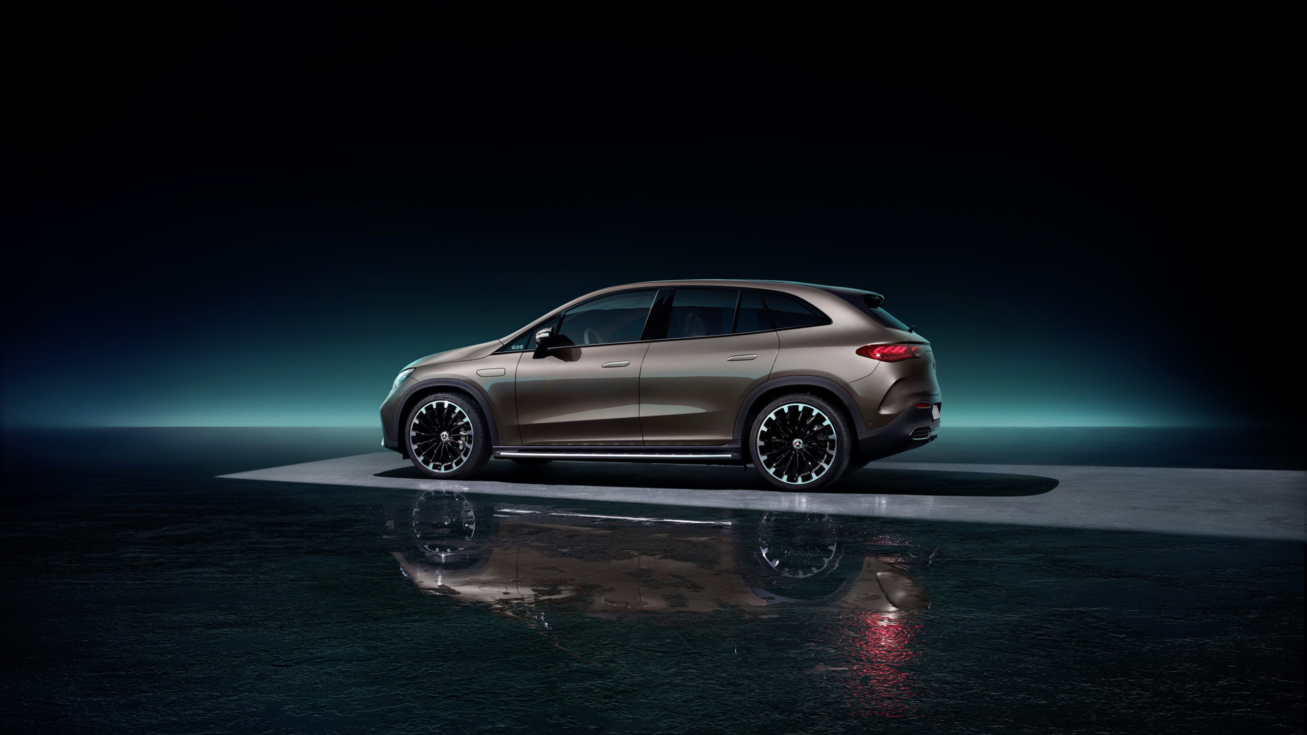 The proportions of the EQE SUV combine function and aesthetics with the sporty character of the SUV. The new model, with its unmistakable purpose design, marks a turning point in its class. The overhangs and the front-end assembly have been kept compact. The wheels in sizes from 19 to 22 inches are positioned flush with the outer edge of the body and lend a commanding stance.
