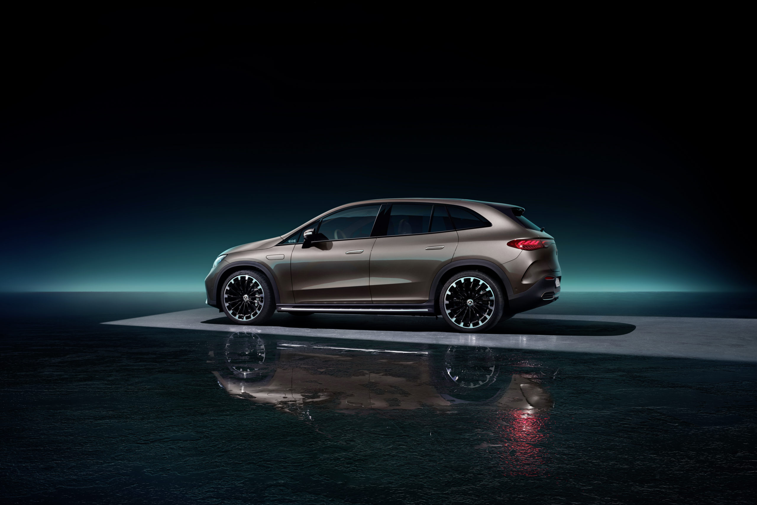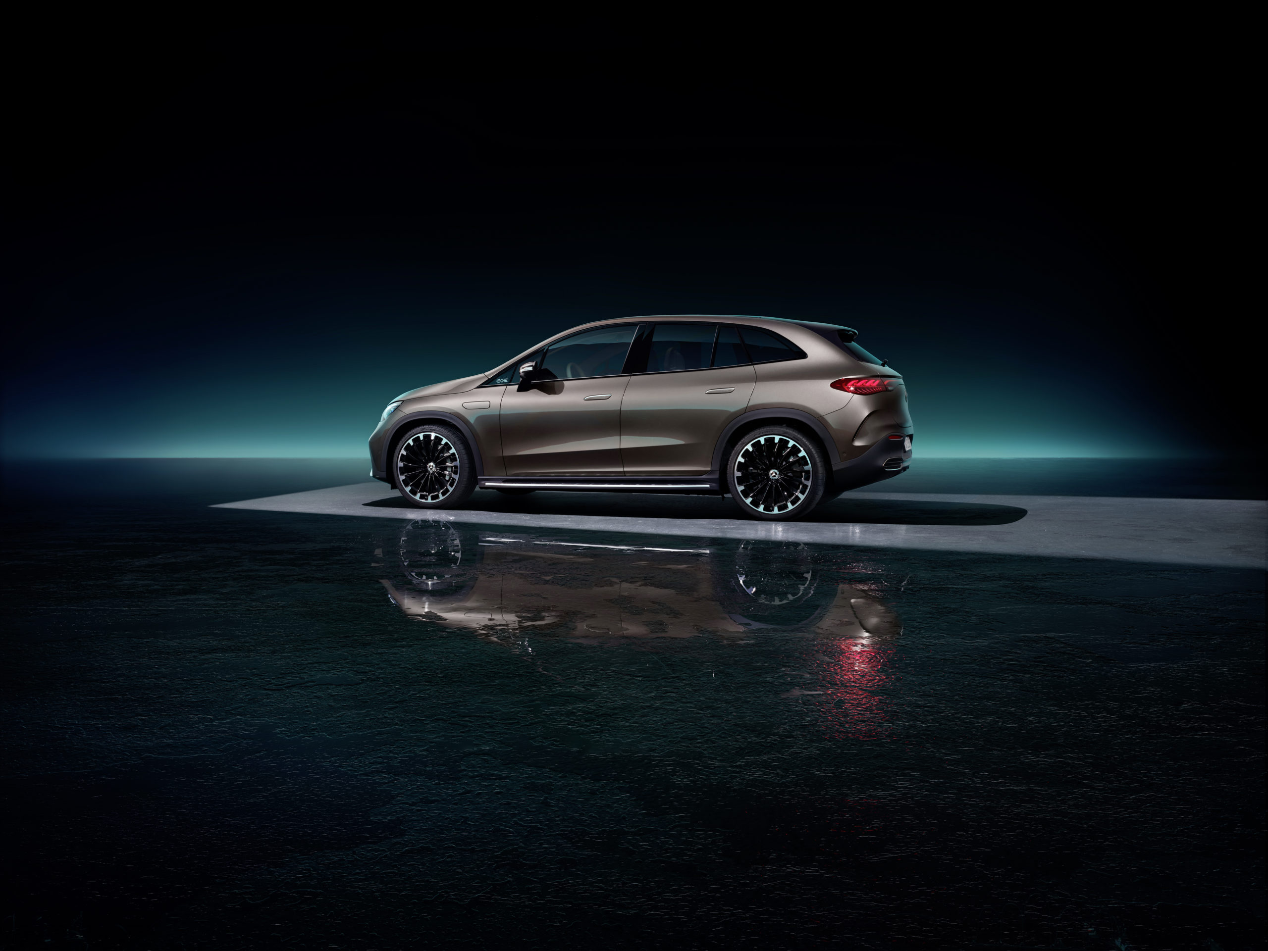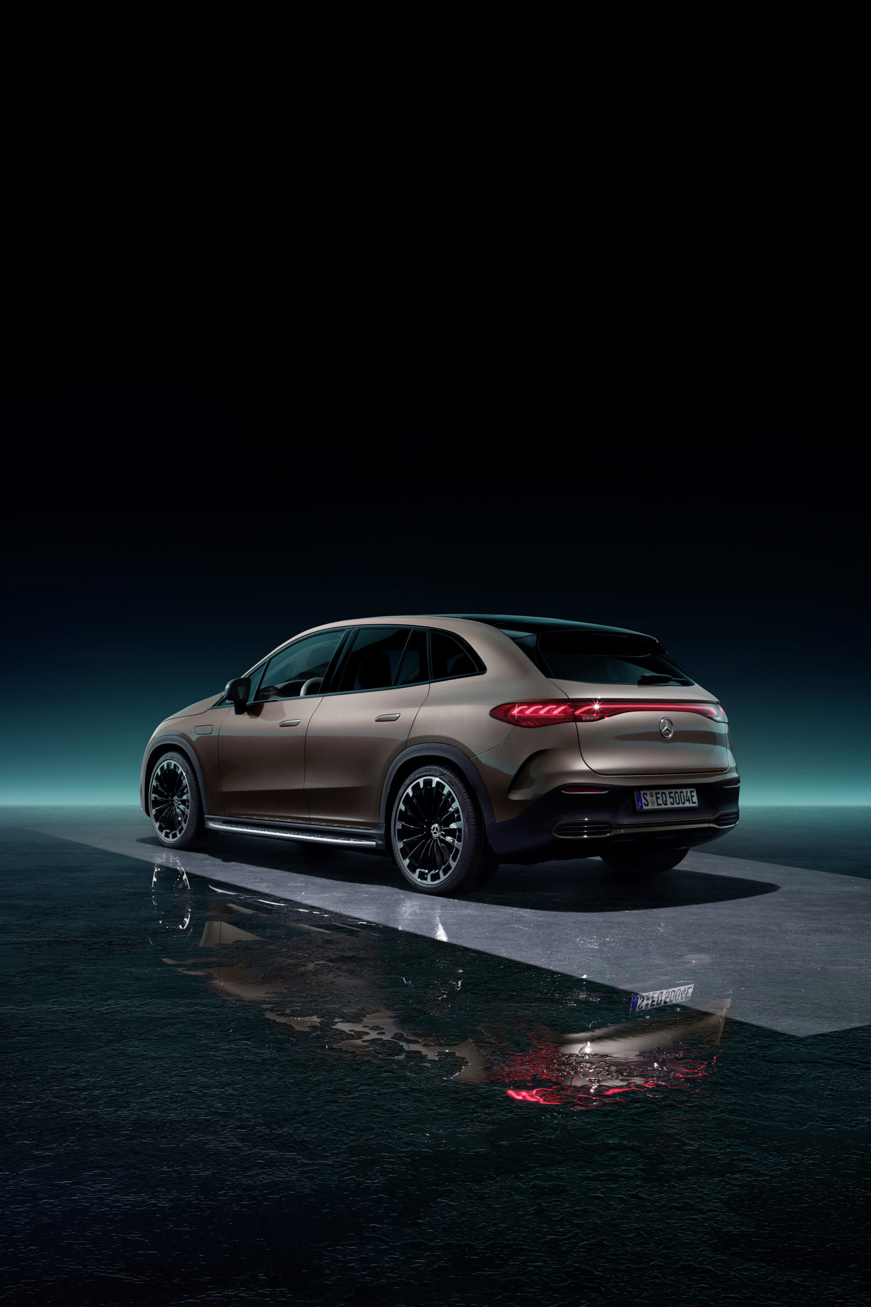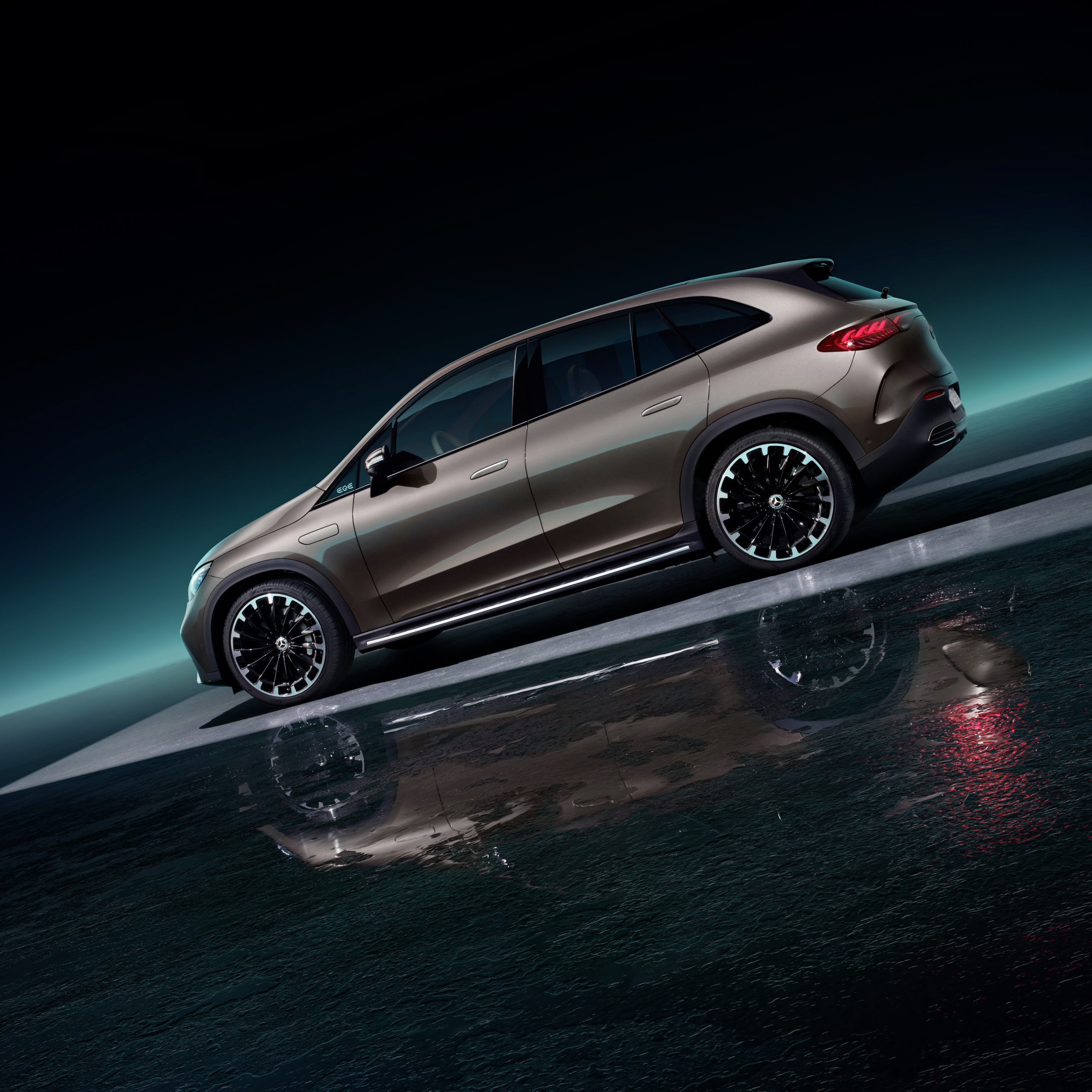 The proportions of the EQE SUV combine function and aesthetics with the sporty character of the SUV. The new model, with its unmistakable purpose design, marks a turning point in its class. The overhangs and the front-end assembly have been kept compact. The wheels in sizes from 19 to 22 inches are positioned flush with the outer edge of the body and lend a commanding stance.