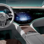 With adaptive software, the MBUX display and operating system makes personalised suggestions for numerous infotainment, comfort and vehicle functions. A highlight of the interior is the optional MBUX Hyperscreen. With the zero-layer design, the user does not have to scroll through submenus or give voice commands. Situational and contextual applications are offered at the top level in the field of view. With the MBUX Hyperscreen (optional extra), three displays merge almost seamlessly into one another to create a screen band over 141 centimetres wide. The front passenger in the EQE SUV has the option of a 12.3-inch OLED display with its own user interface. The system uses an intelligent, camera-based blocking logic that recognises if the driver is looking toward the front passenger display. If this is the case, the system automatically dims the dynamic content for security reasons (see separate chapter).