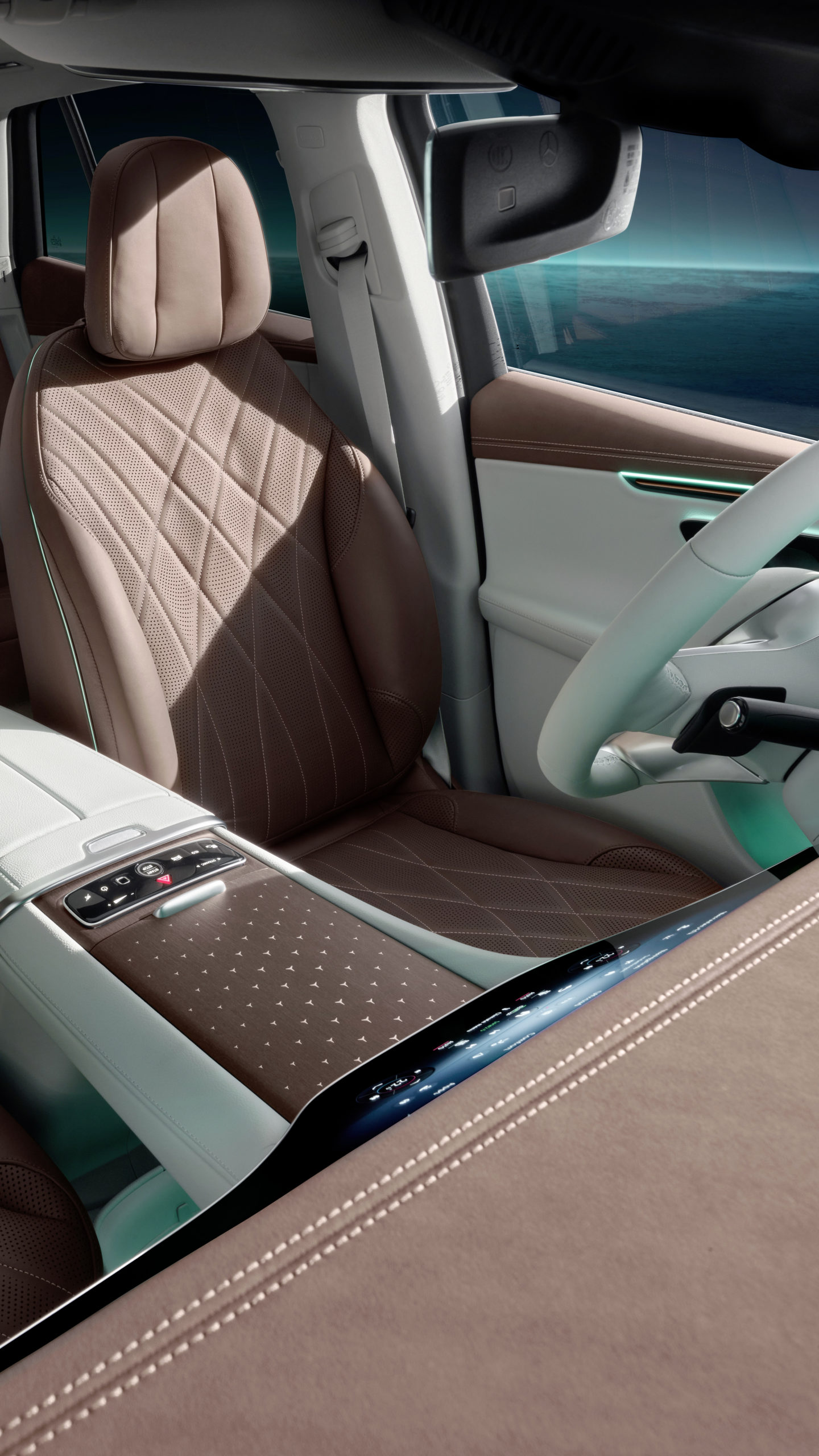 The EQE SUV features a sophisticated thermal architecture with a heat pump as standard. This makes the system work very efficiently: the waste heat from the electric drive (inverter and electric motor) and also the high-voltage battery can be used to heat the interior. This reduces drastically the draw on battery power for the heating system, thus increasing the range. Another pleasant and efficient function is pre-entry climate control. The THERMATIC automatic climate control system with two climate zones is fitted as standard, while the THERMOTRONIC with four zones is available as an option.