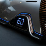 The show car’s body structure is made of carbon fibre. The multiple layers of paintwork in alubeam silver appear like liquid metal over the top. This concept represents the design polar opposites of “hot” and “cold”. Functional attachment parts made of carbon fibre such as the front splitter epitomise the cool and rational aspect of this philosophy. The same applies to the front trim designed as a display, as well as the continuous lighting strip at the front. The side skirts also feature a lighting strip and the large, recessed EQ lettering in front of the rear wheels is illuminated blue as is characteristic of the brand.