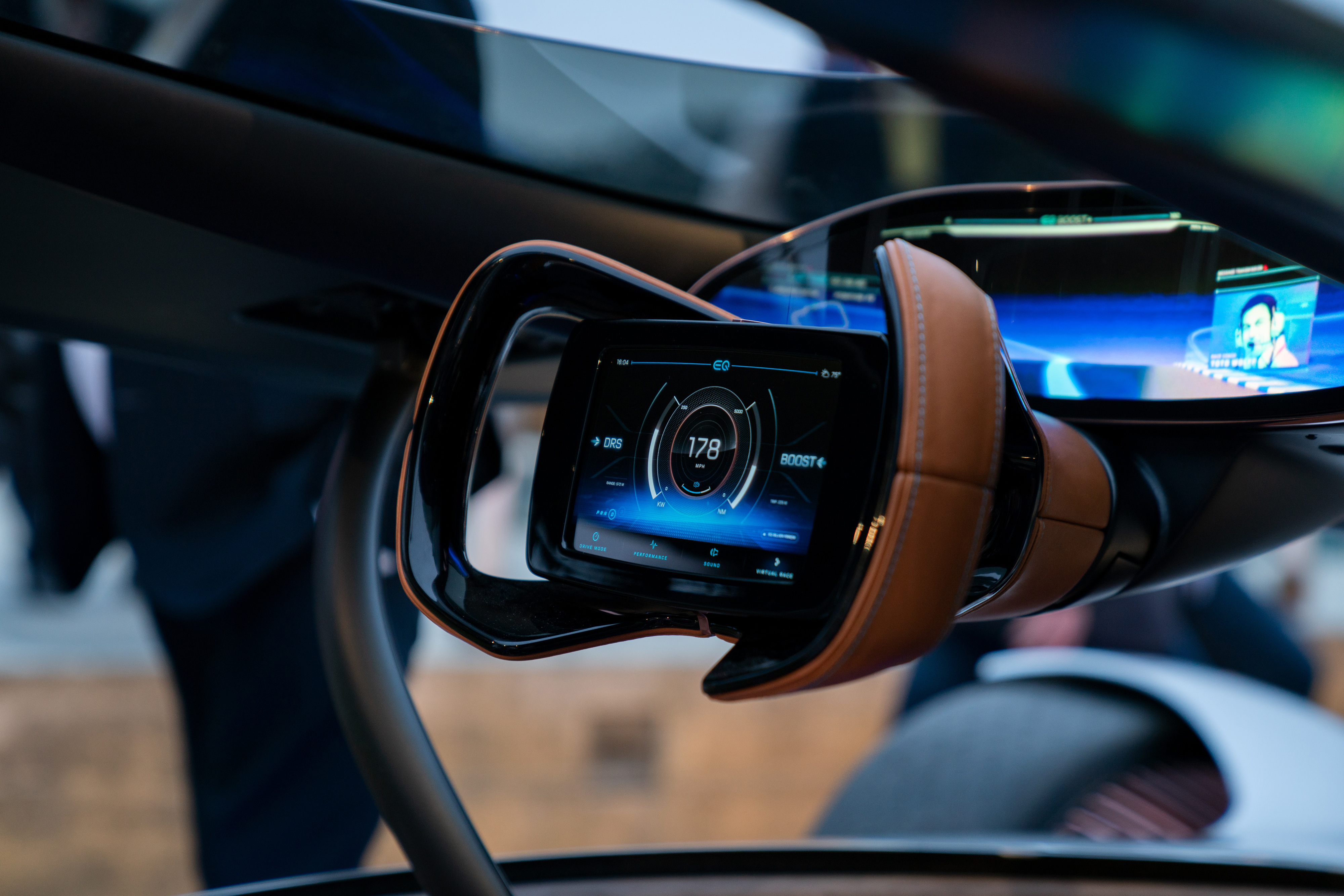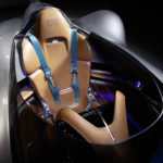 The sitting surface and backrest have an unusual pattern which is aligned with the seat contour: Stars have been stitched in with the help of laser engraving. AIRSCARF neck-level heating is integrated into the seat. A four-point seatbelt inspired by motorsport holds the driver securely in place. The pedals can be adapted to the driver’s specific stature, with a controller located on the seat for adjusting the pedals.