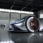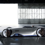 With its clear, seamless design, the design idiom of the Vision EQ Silver Arrow is a brand-specific embodiment of the design philosophy of Sensual Purity. The streamlined silhouette of the approximately 5.3-metre long and approximately one metre shallow one-seater vehicle is slender yet sensuous.