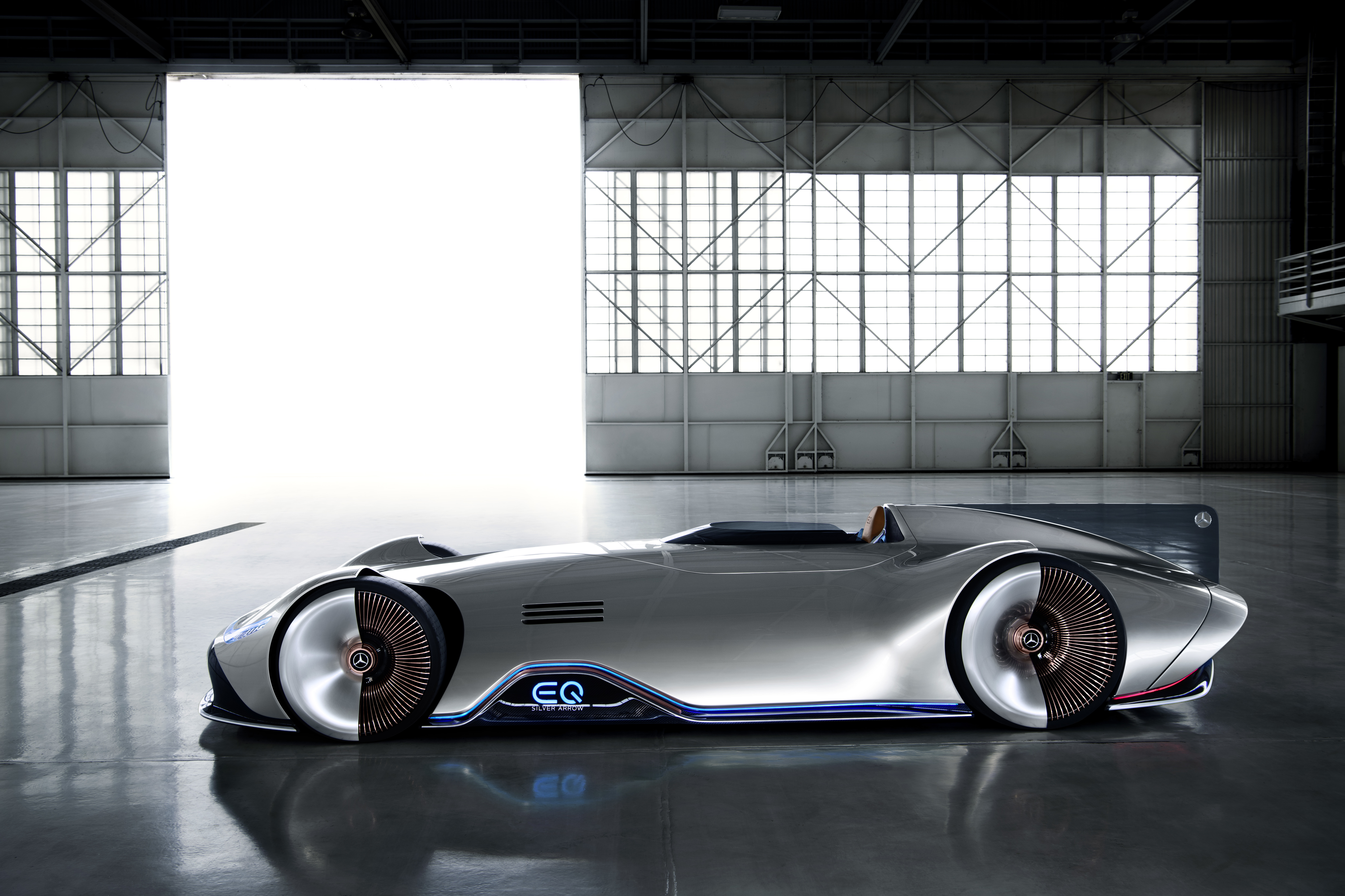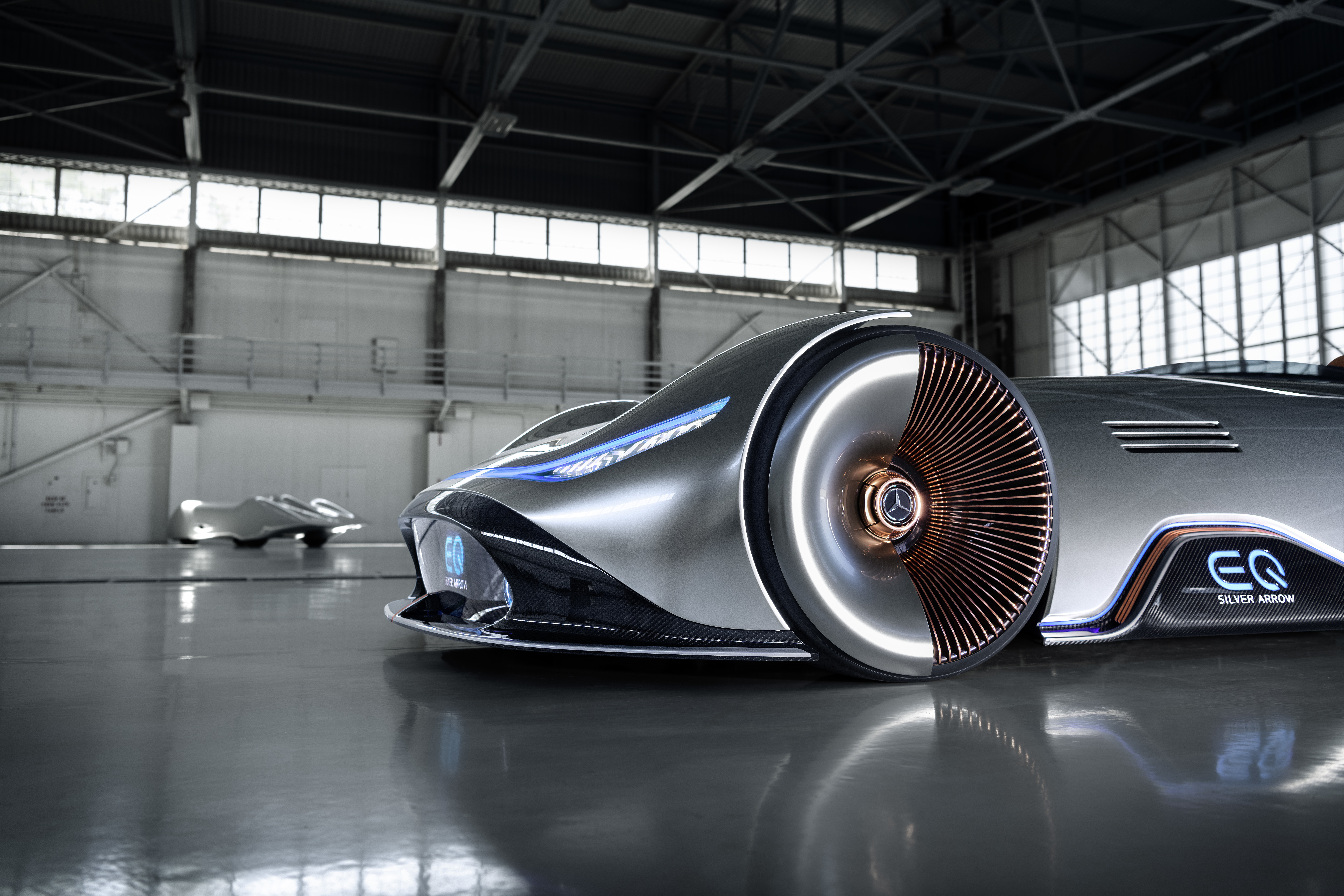 The role model for the Vision EQ Silver Arrow is the W 125 twelve-cylinder, record-breaking car which Mercedes-Benz built in 1937 on the basis of the Grand Prix racing car.