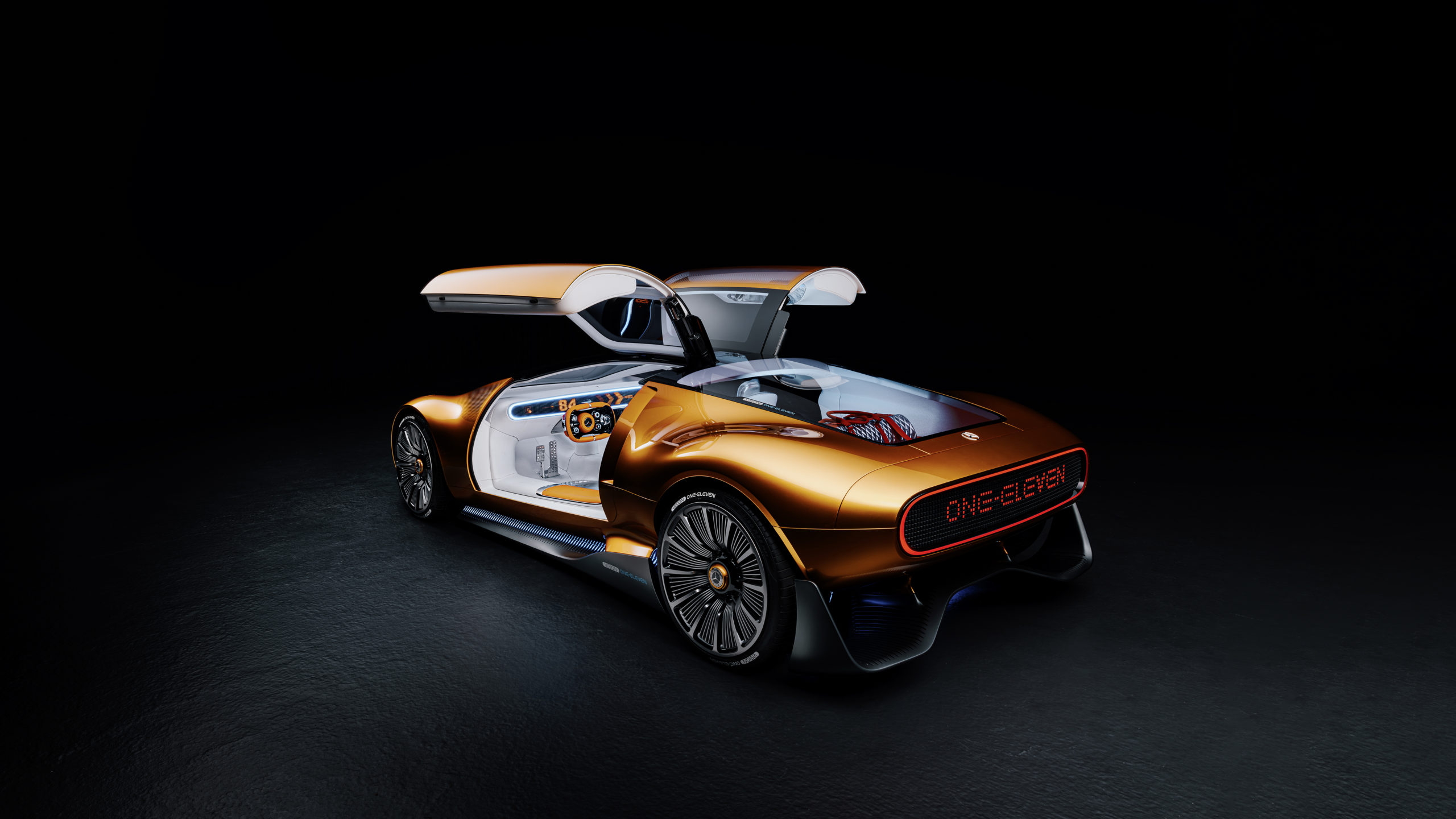 Mercedes-Benz presents a new sports car study. The Vision One-Eleven combines a highly dynamic design language with innovative all-electric powertrain technology. The supercar silhouette is characterised by skilful execution of the signature Mercedes-Benz One-Bow design that is a marker of its 21st‑century style. The development of this design underscores the positioning of the Mercedes-Benz brand, which stands for ICONIC LUXURY. Its technical highlights include the extremely powerful and highly efficient axial-flux motor developed by electric motor specialist YASA. The British company has been a 100-percent subsidiary of Mercedes-Benz AG since July 2021.