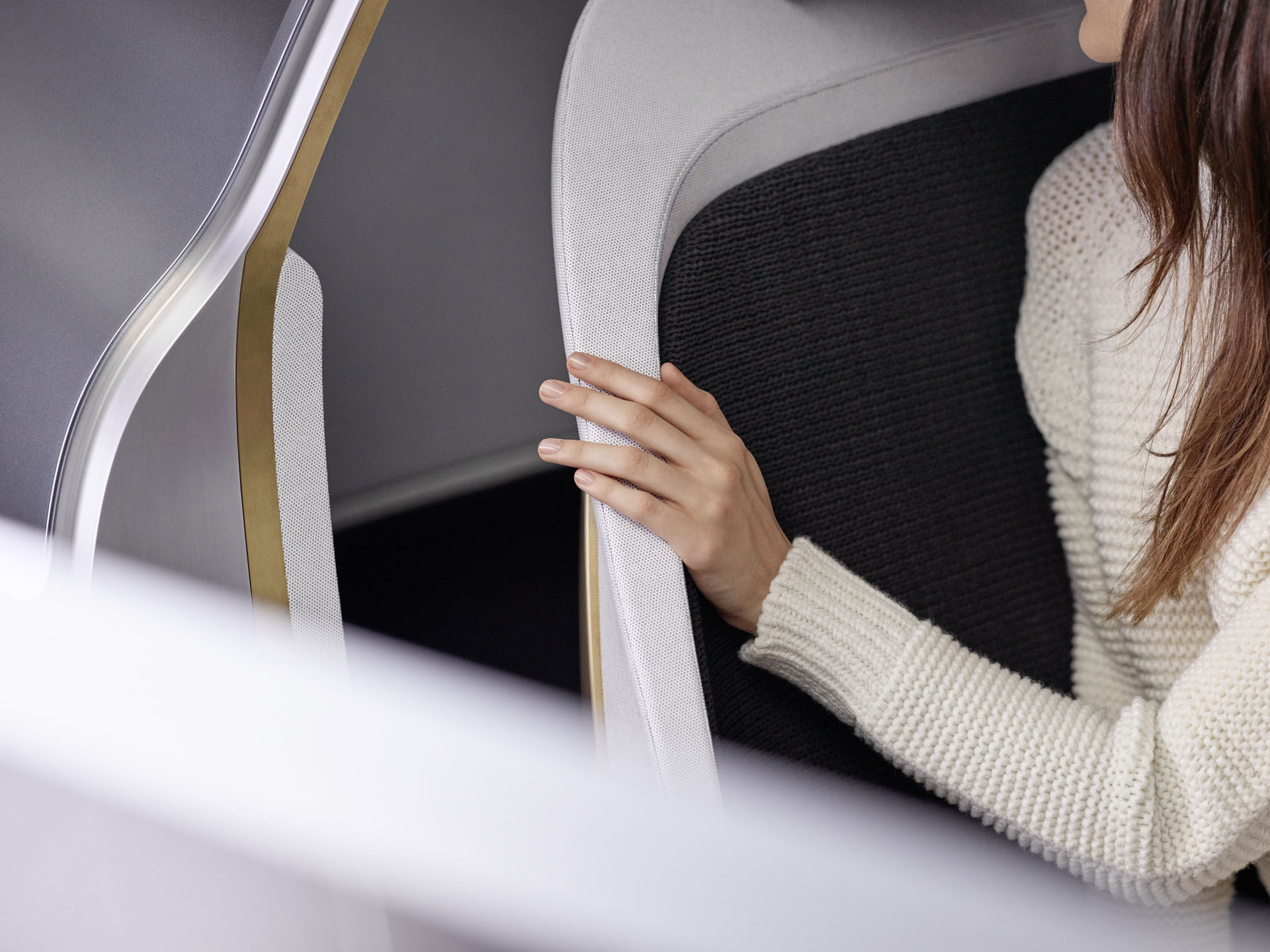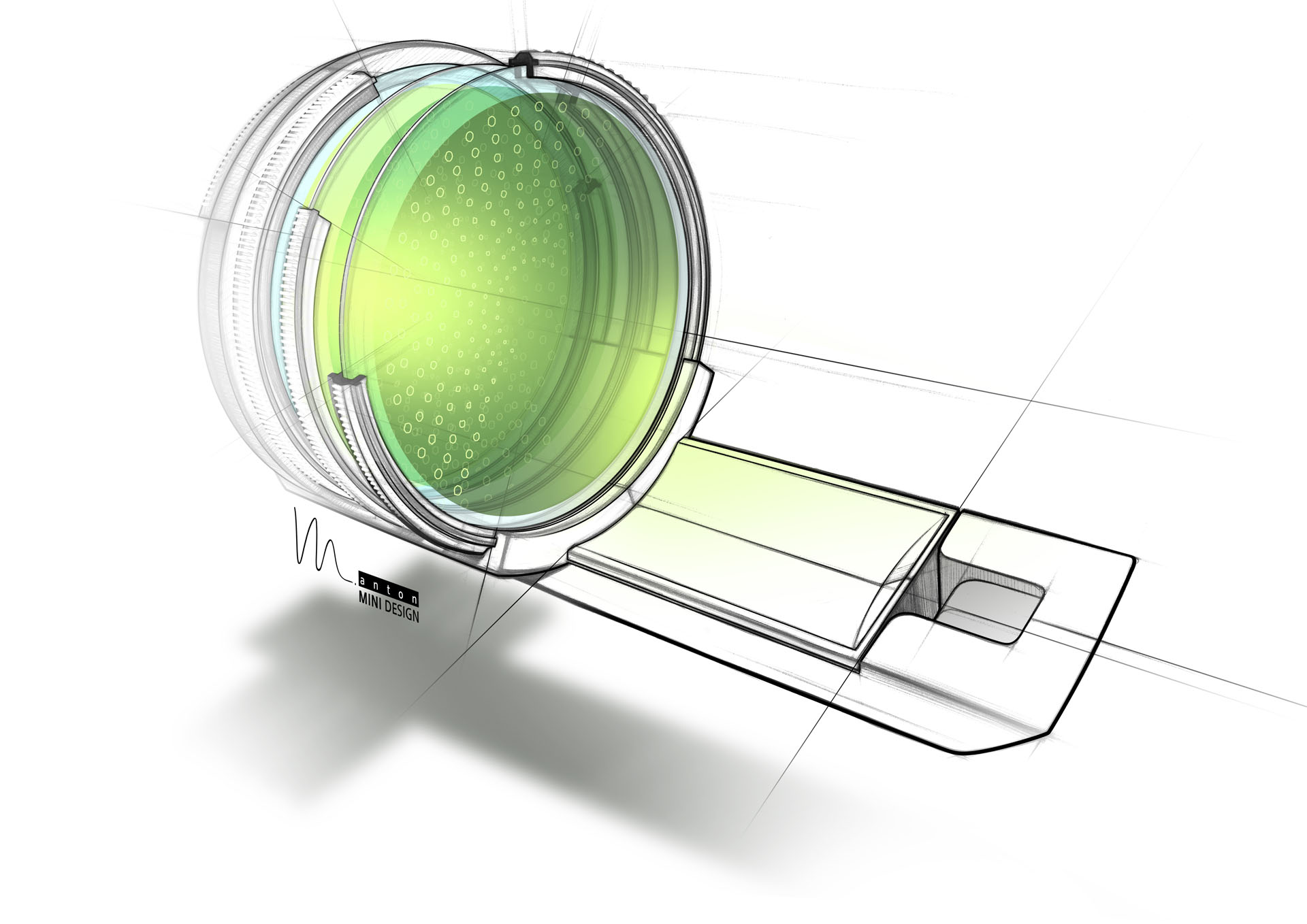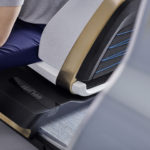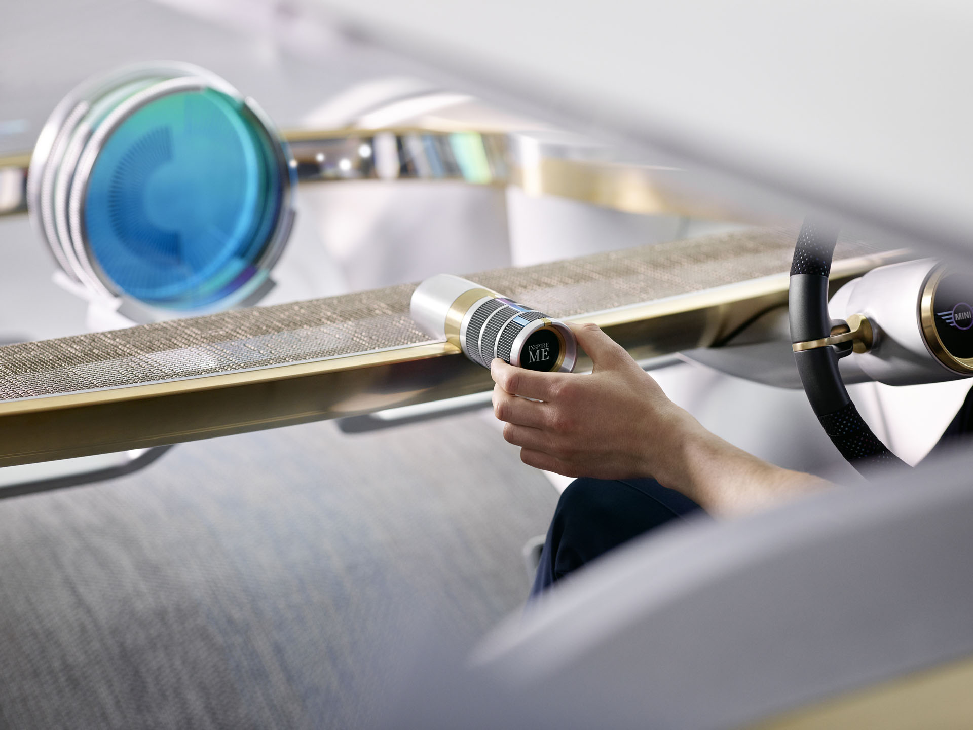 Making responsible use of resources is key in the selection of materials for the MINI VISION NEXT 100. These materials should retain their high level of perceived quality over many years, age stylishly and offer a special tactile experience. As digitisation increases, analogue qualities and experiences will become more important. With the more intensive use of a shared car, interiors will need to be much more hard wearing. In addition to the modern materials made from recycled plastic and aluminium in the floor area, roof lining and side panel trim, for example, the MINI interior designers used materials less commonly found in car cabins, such as brass, basalt and cellulose. The wraparound carrier and information strip, with its mount for the sliding steering wheel, and the Cooperizer with its thin brass structure are good examples here. The designers made the storage net behind the steering wheel from lightweight basalt, while the lower section of the seat is trimmed in a recycled cellulose material similar to paper. This novel use of materials included deliberately allowing a patina to develop through use and ensuring they retain along-lasting and sophisticated appearance. When it comes to the natural look and feel of surfaces, the designers have embraced the irregularities inherent in the chosen materials and processing methods. That also applies to the seat covers in knitted Alcantara – a robust, somewhat iridescent material. The designers have steered clear of traditional interior materials like wood and leather altogether. Another example of analogue design in the MINI Vision Vehicle can be found in the wheels, whose rotation generates an “Ombro Cinema” effect: This involves the outer surface of the wheel not moving and only a disc behind it turning with the tyre. The even movement of a shimmering graphic – again brass-coloured – can be observed through openings in the outside of the wheel. The idea is for each wheel to look like a piece of a mechanical jewellery.