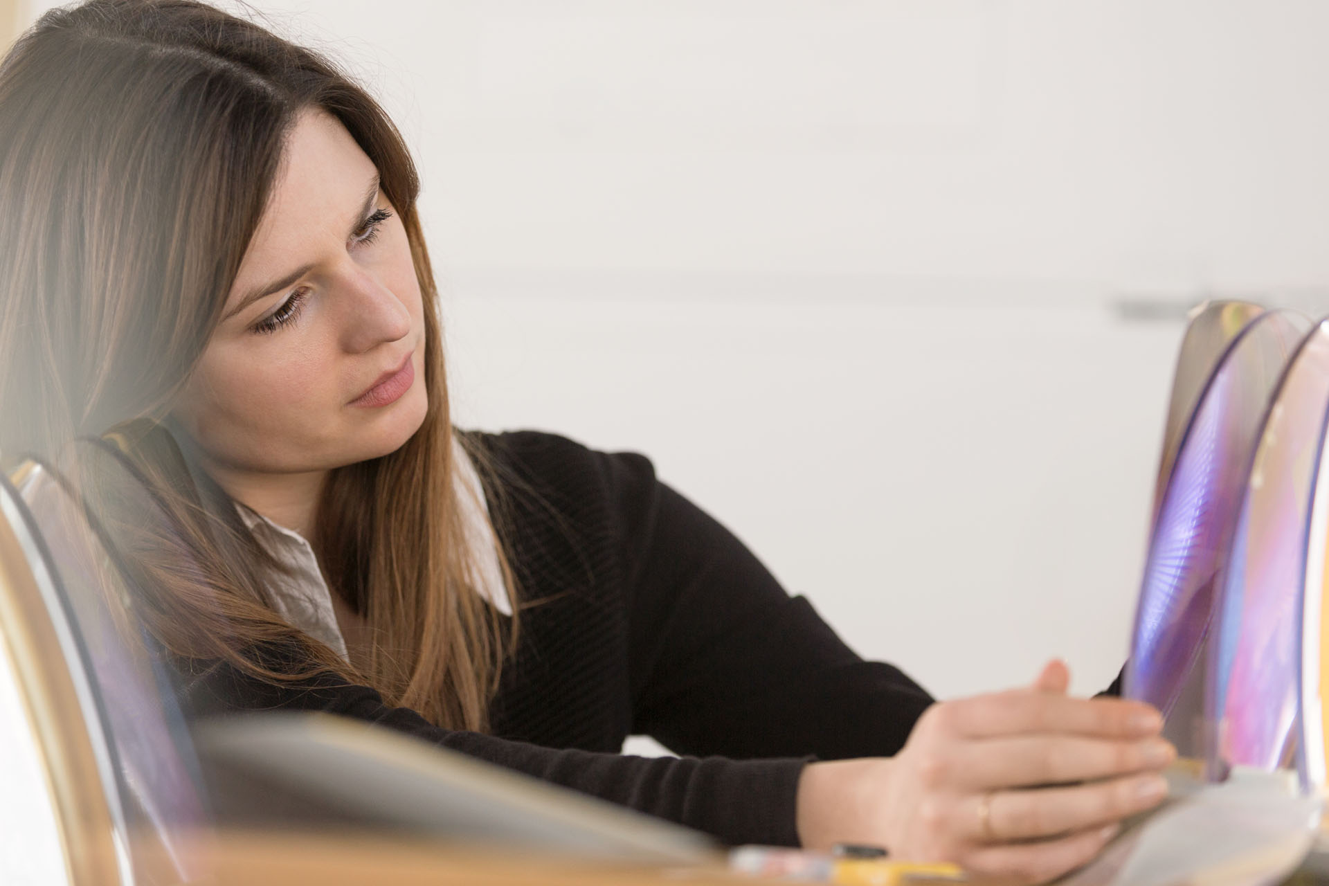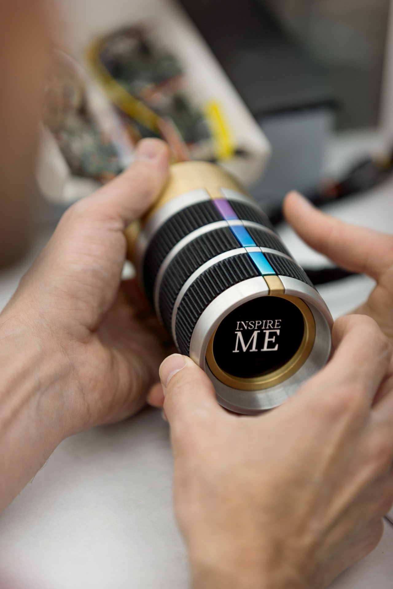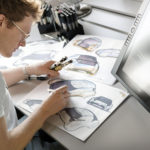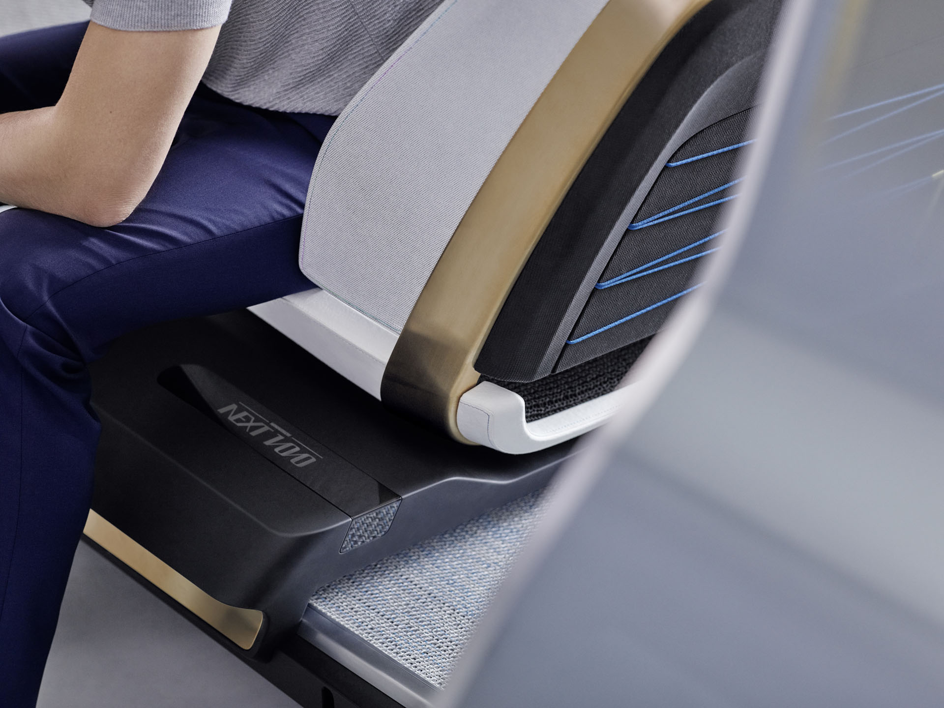 Making responsible use of resources is key in the selection of materials for the MINI VISION NEXT 100. These materials should retain their high level of perceived quality over many years, age stylishly and offer a special tactile experience. As digitisation increases, analogue qualities and experiences will become more important. With the more intensive use of a shared car, interiors will need to be much more hard wearing. In addition to the modern materials made from recycled plastic and aluminium in the floor area, roof lining and side panel trim, for example, the MINI interior designers used materials less commonly found in car cabins, such as brass, basalt and cellulose. The wraparound carrier and information strip, with its mount for the sliding steering wheel, and the Cooperizer with its thin brass structure are good examples here. The designers made the storage net behind the steering wheel from lightweight basalt, while the lower section of the seat is trimmed in a recycled cellulose material similar to paper. This novel use of materials included deliberately allowing a patina to develop through use and ensuring they retain along-lasting and sophisticated appearance. When it comes to the natural look and feel of surfaces, the designers have embraced the irregularities inherent in the chosen materials and processing methods. That also applies to the seat covers in knitted Alcantara – a robust, somewhat iridescent material. The designers have steered clear of traditional interior materials like wood and leather altogether. Another example of analogue design in the MINI Vision Vehicle can be found in the wheels, whose rotation generates an “Ombro Cinema” effect: This involves the outer surface of the wheel not moving and only a disc behind it turning with the tyre. The even movement of a shimmering graphic – again brass-coloured – can be observed through openings in the outside of the wheel. The idea is for each wheel to look like a piece of a mechanical jewellery.