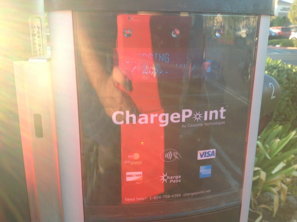 At the time of writing I am parked at a local Walgreens, where they ave a Chargepoint station. At $1 per hour it charges, as at a blink, using the small charger connection. There are no stations in my area that an accommodate the big and fast charger, the one that would recharge to full within 30 minutes. Nice advert, but nowhere to be found.