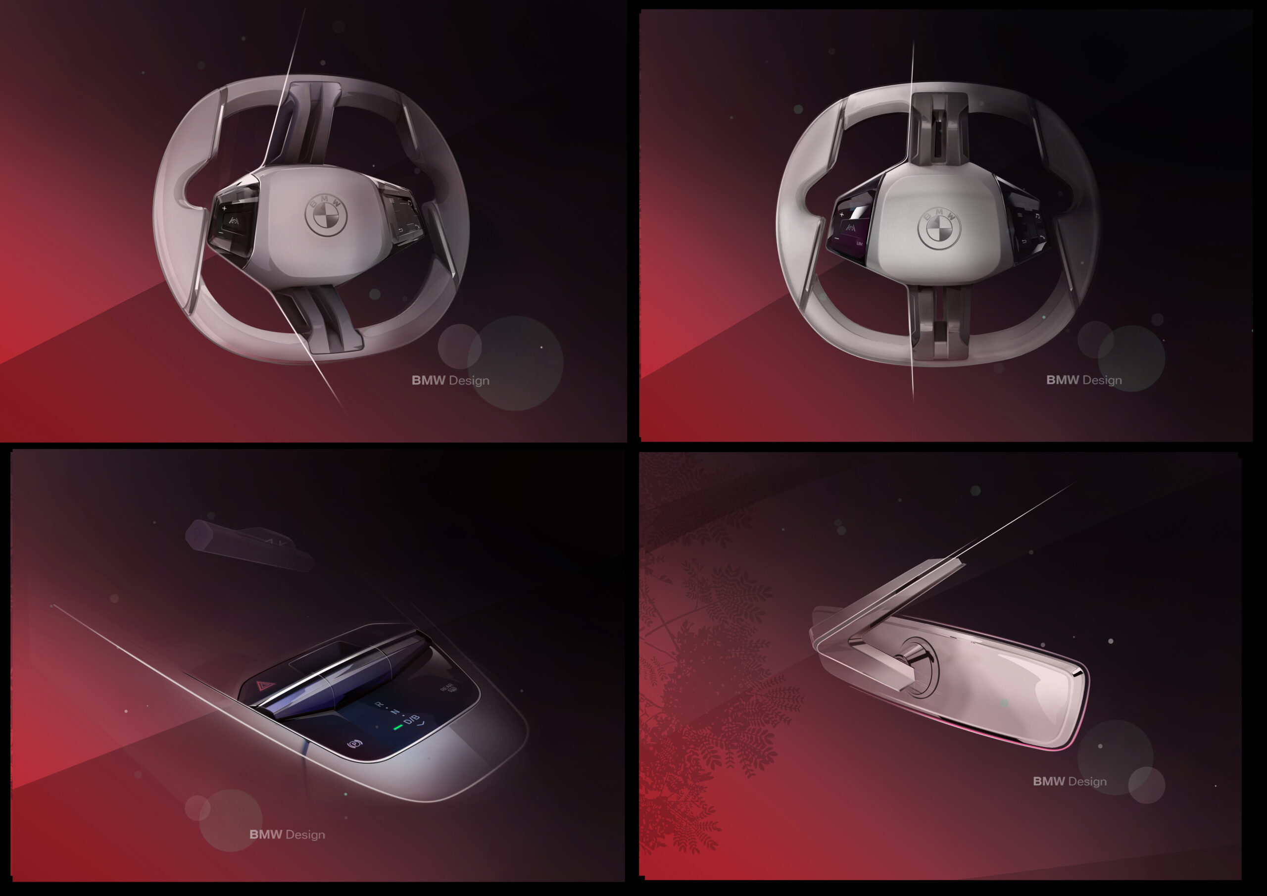 The slightly elevated seating position ensures a confident driving experience. The redesigned steering wheel with multifunction buttons, Central Display with intuitive touch control functionality and BMW Panoramic Vision, together with the advanced voice control of the BMW Intelligent Personal Assistant, serve as the effortless and intuitive interfaces for human-car interaction. BMW Panoramic Vision projects key information across the full width of the windscreen. It will be complemented in production models of the Neue Klasse by the enhanced BMW 3D Head-Up Display.