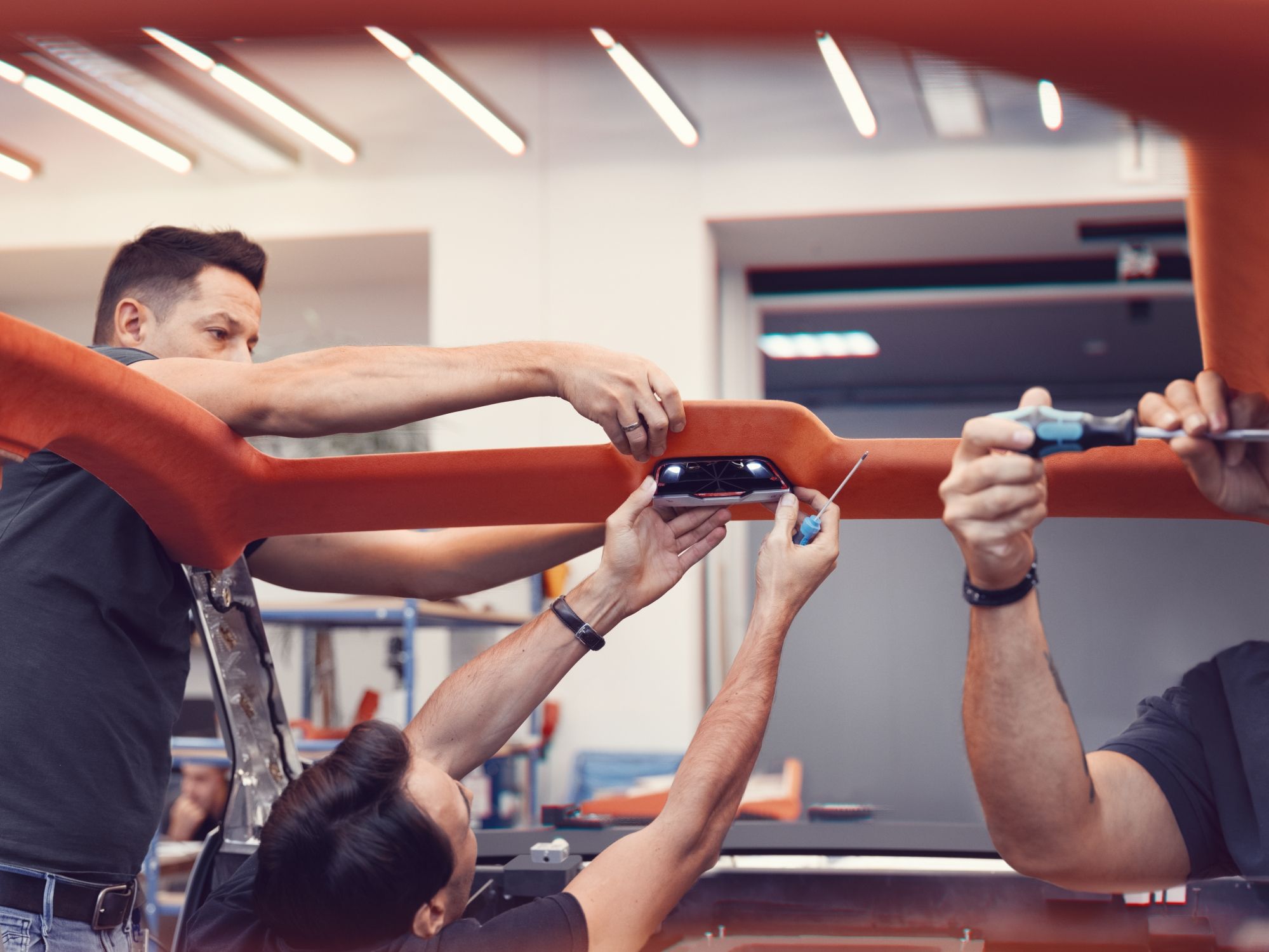 The choice of materials and construction method enable easier disassembly of components and improved recyclability. The side skirts and front and rear apron attachments are also produced from recycled mono-materials. In this, the new design concept follows the principle of the BMW i Vision Circular presented in 2021, which relied extensively on mono-materials to optimise recyclability.