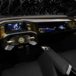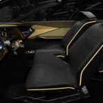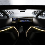 The exterior also features holographic rear tail lamps and a B-pillar-less 4-door body structure with reverse-opening rear doors for easy interior access. To emphasize its Japanese character, a traditional Japanese Asanoha geometric graphic pattern has been applied in gold over the IMs concept’s smoked glass roof surface. The pattern is used throughout the vehicle, including on the wheels and inside the cabin.