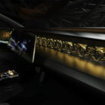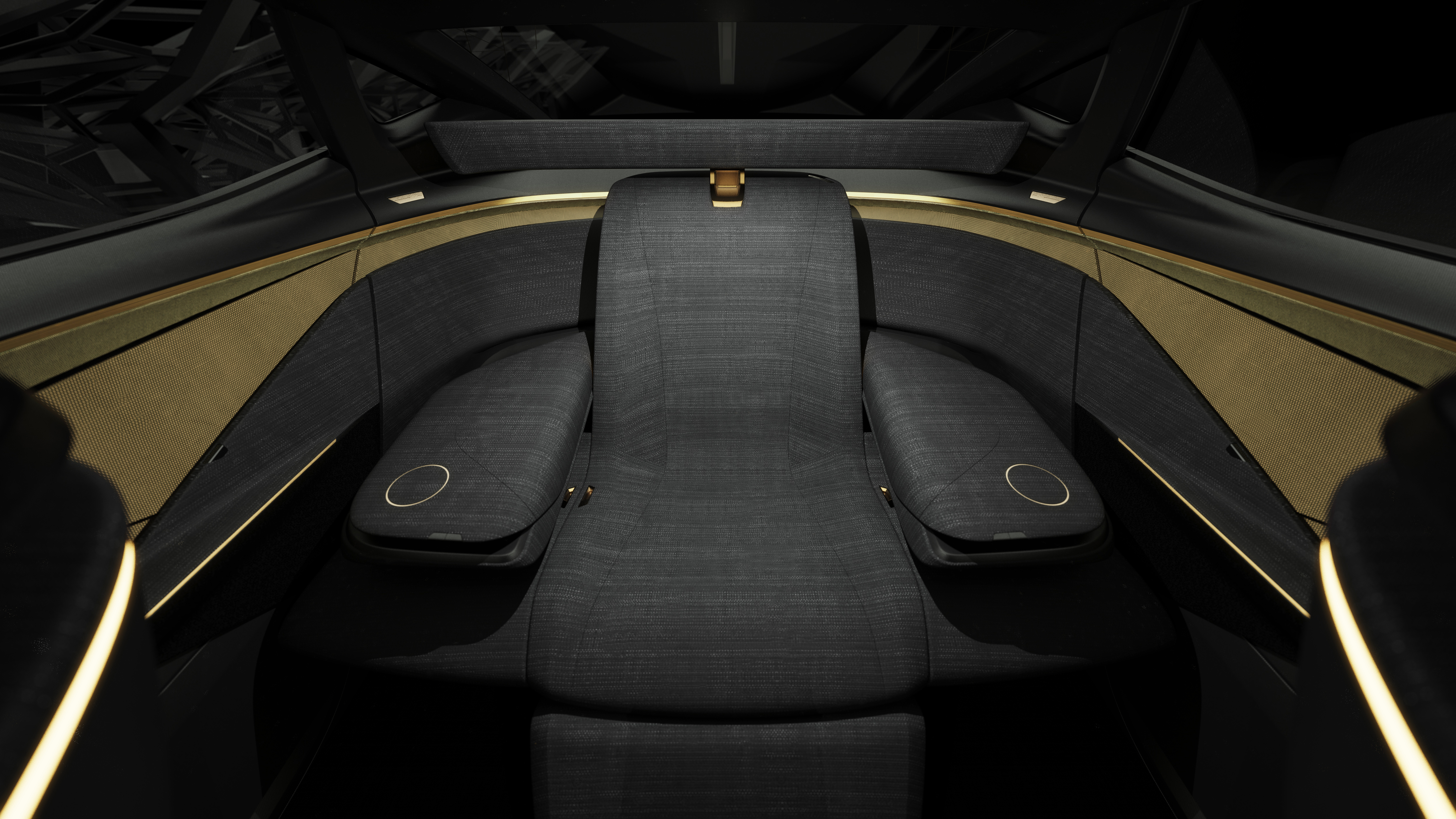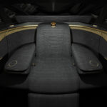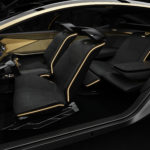 Dominating the rear space is the innovative “Premier Seat,” an oversized center seat that appears out of the three-across rear seat after the slim outboard positions are folded. The interior color treatment utilizes darker materials in contrast to the lighter, simpler exterior. Gold details are found throughout the interior, providing elements of light to the interior in the same fashion as Japanese paper door screens provide light for traditional Japanese tatami rooms.