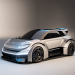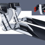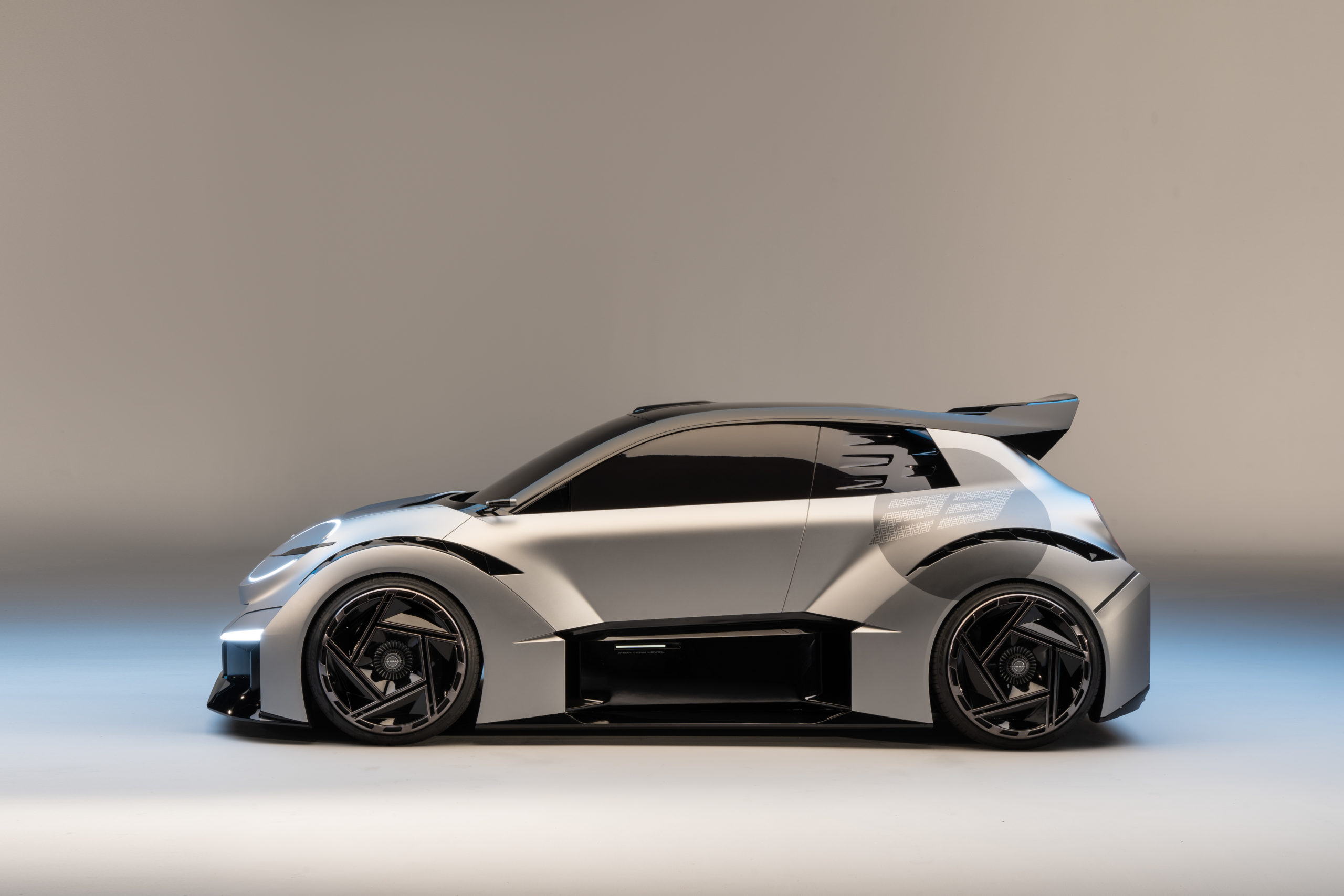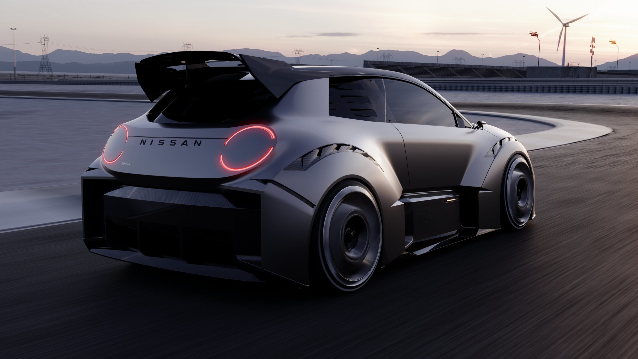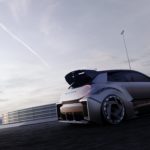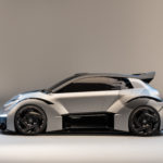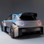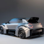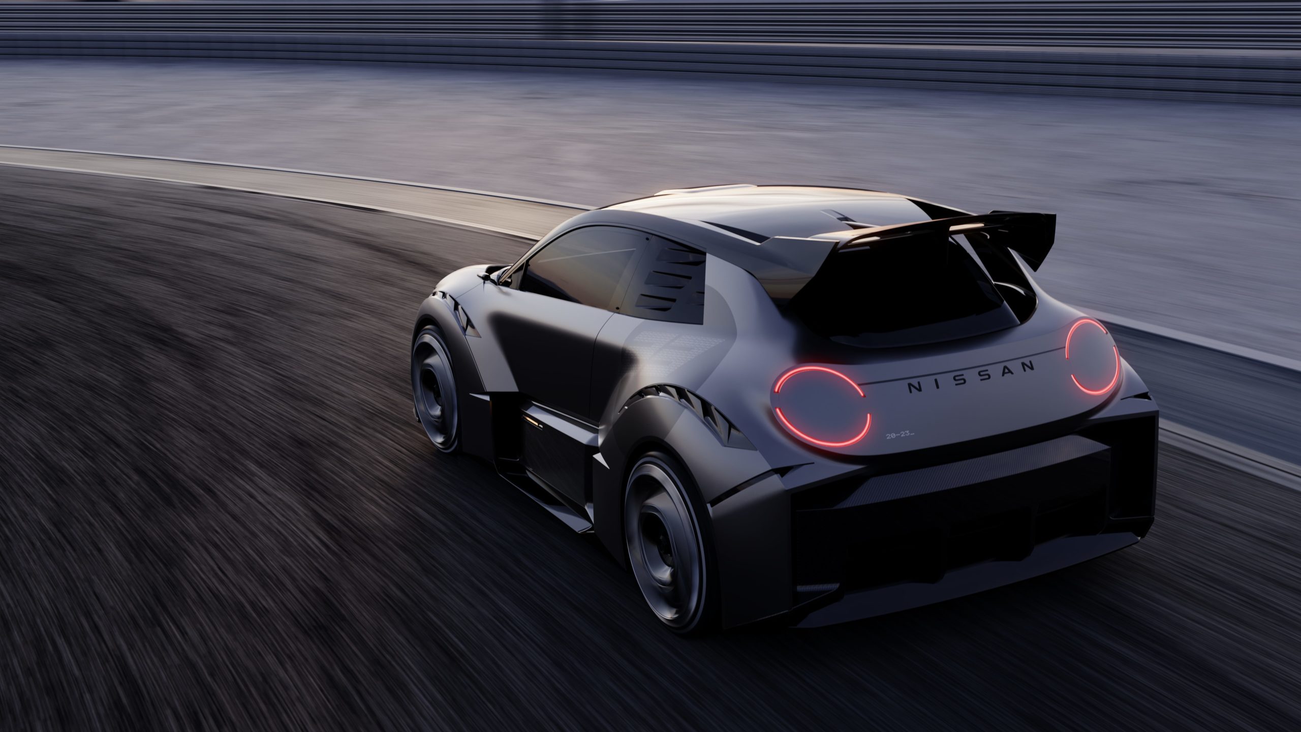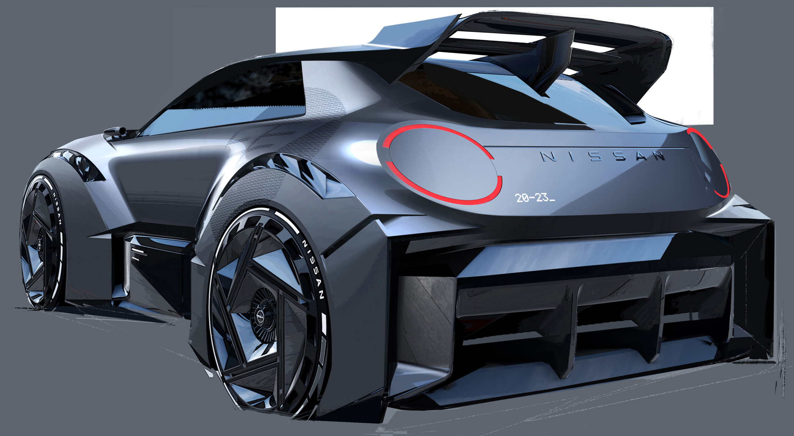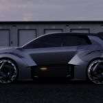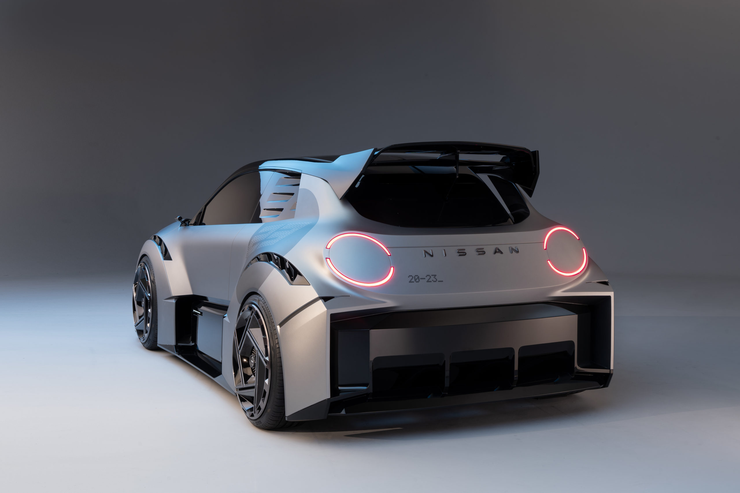 The modern twist on this small car playfulness reflects both the world of online racing and Nissan’s participation in Formula E. The Concept 20-23’s basic 3-door hatchback body-style features extreme aerodynamic addenda front and rear, with deep skirts which direct the airflow away from the front of the car, through apertures to cool the brakes and out through vents just behind the front wheels.