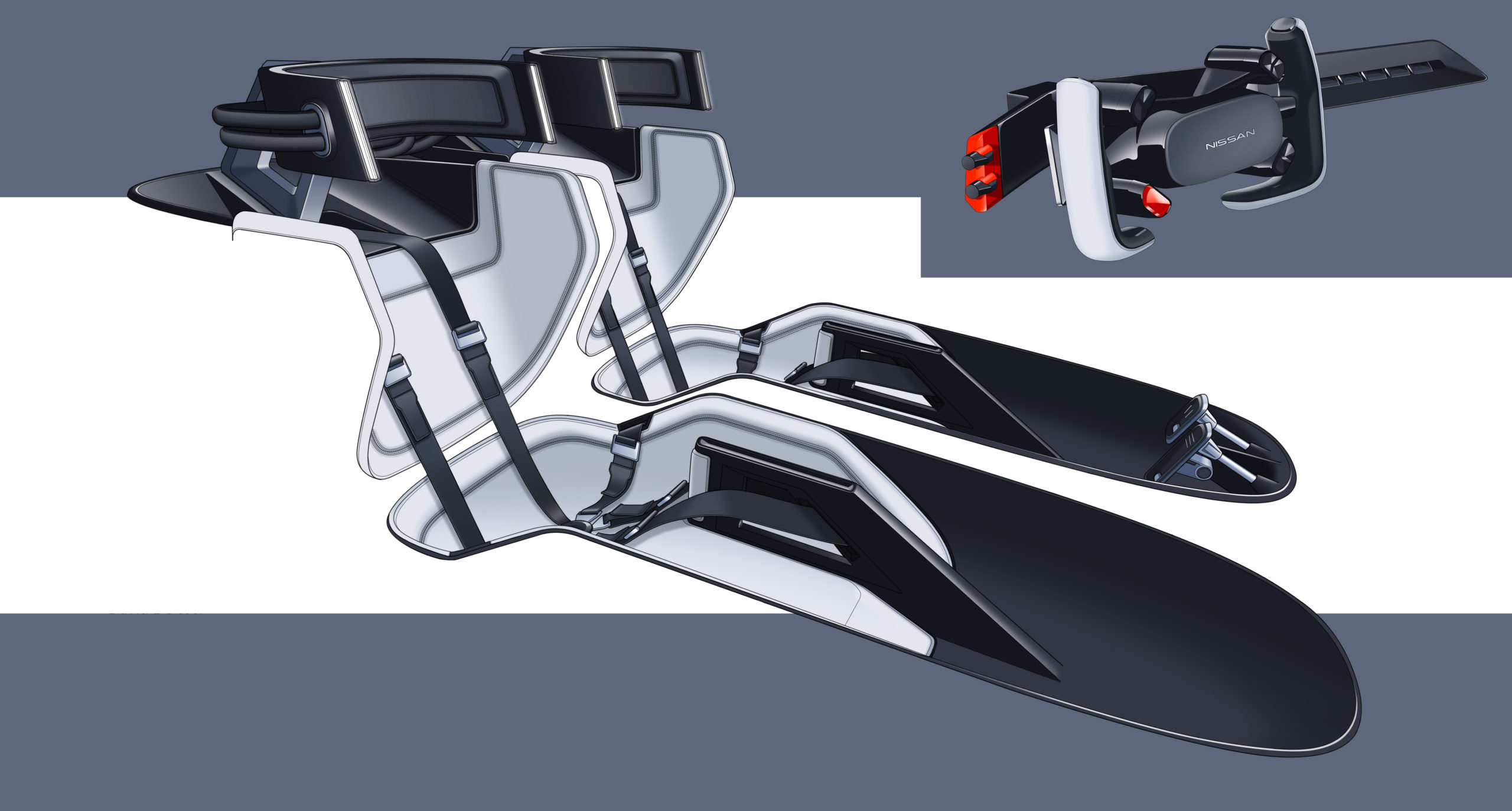 The interior is a futuristic interpretation of a racing car’s bare functionality. with just a couple of screens displaying vital information with minimal distractions – a reflection of where real racing cars – such as Nissan’s Formula E entrant – inspire online racing simulator set-ups.