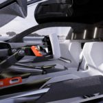 While the Concept 20-23 car model is an exterior model only, the team of interior designers created an interior that reflects the extremely sporty nature of the exterior. First of all, entry is by two scissor doors which hinge upwards from the base of the A-pillar.