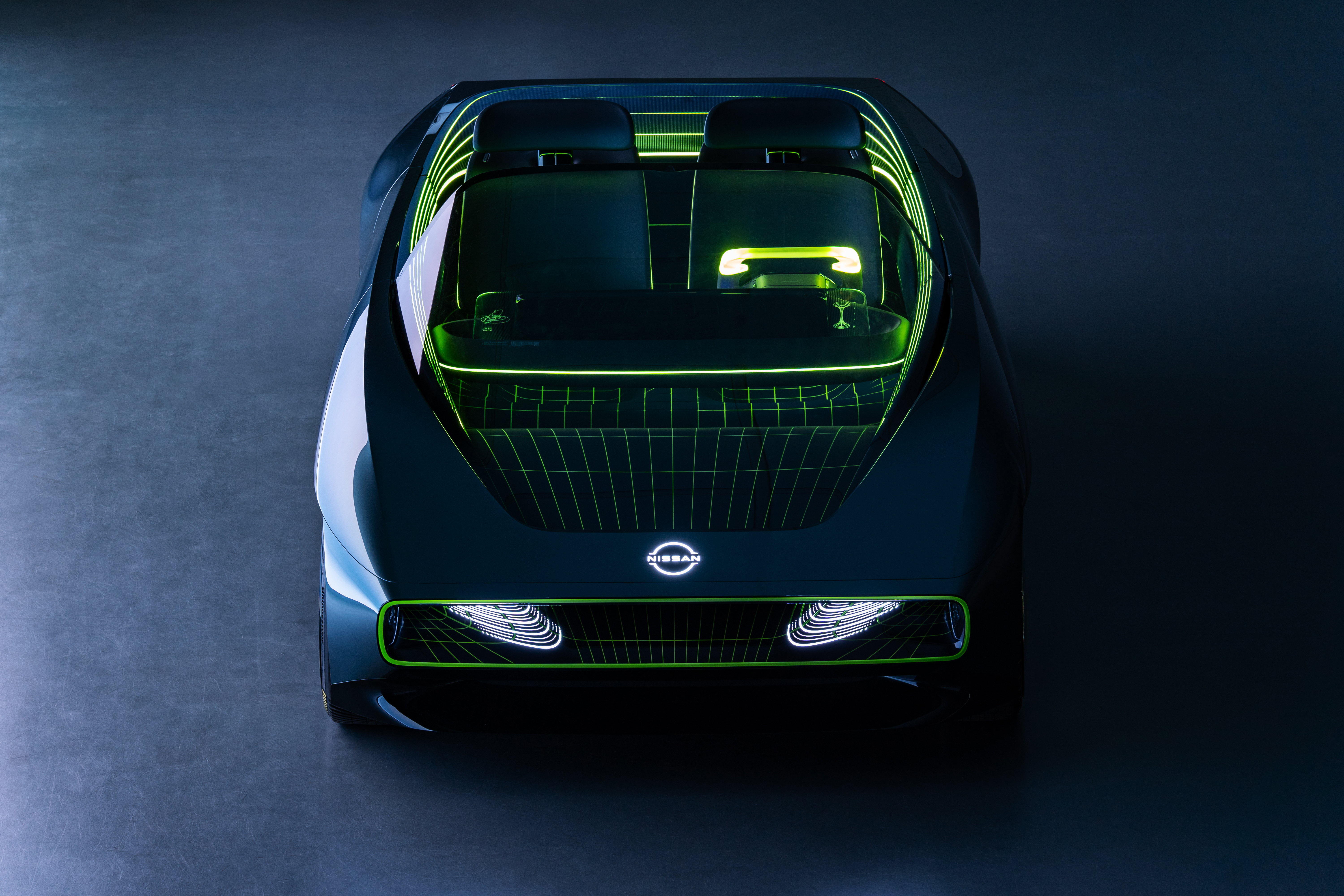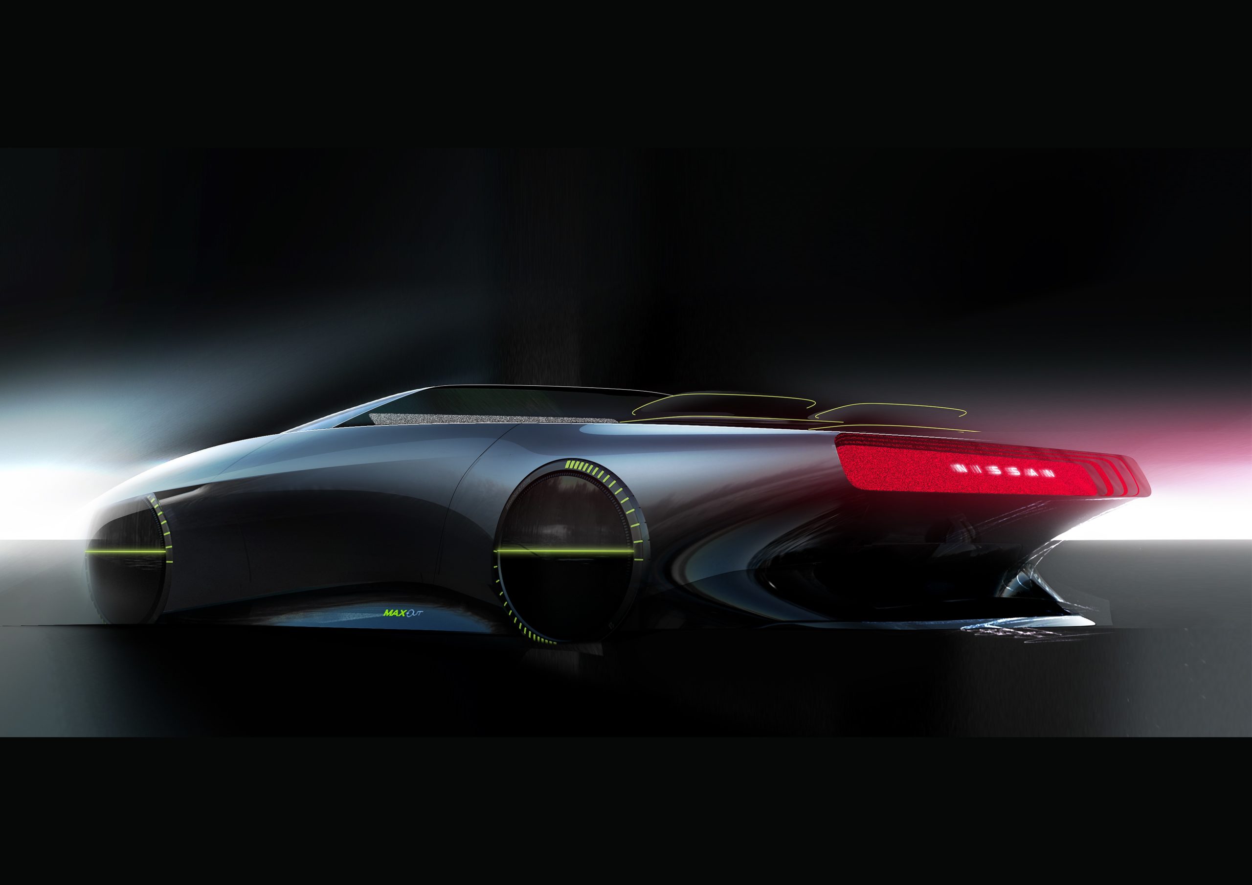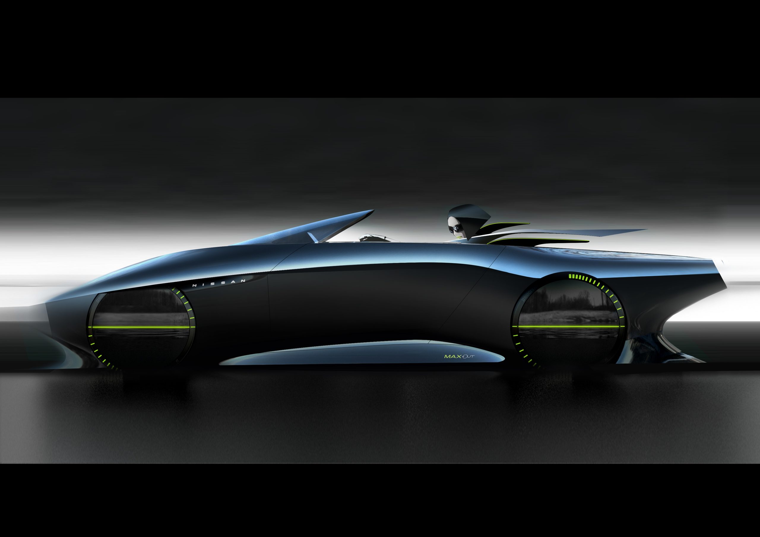 The Max-Out is a design exploration in “being one with the car.” It embodies Nissan’s new artistic stage and movement toward an increasingly digitized future, as expressed by its unique parabolic hologram wheels. The sleek sports car’s aerodynamic shape, ultra-low center of gravity and e-4ORCE electric all-wheel-drive system give it superb handling and enhanced safety. The cabin’s ultra-wide display screen, which resembles the Max-Out’s distinctive exterior lamps, provides the driver with a fusion of the virtual and real worlds.