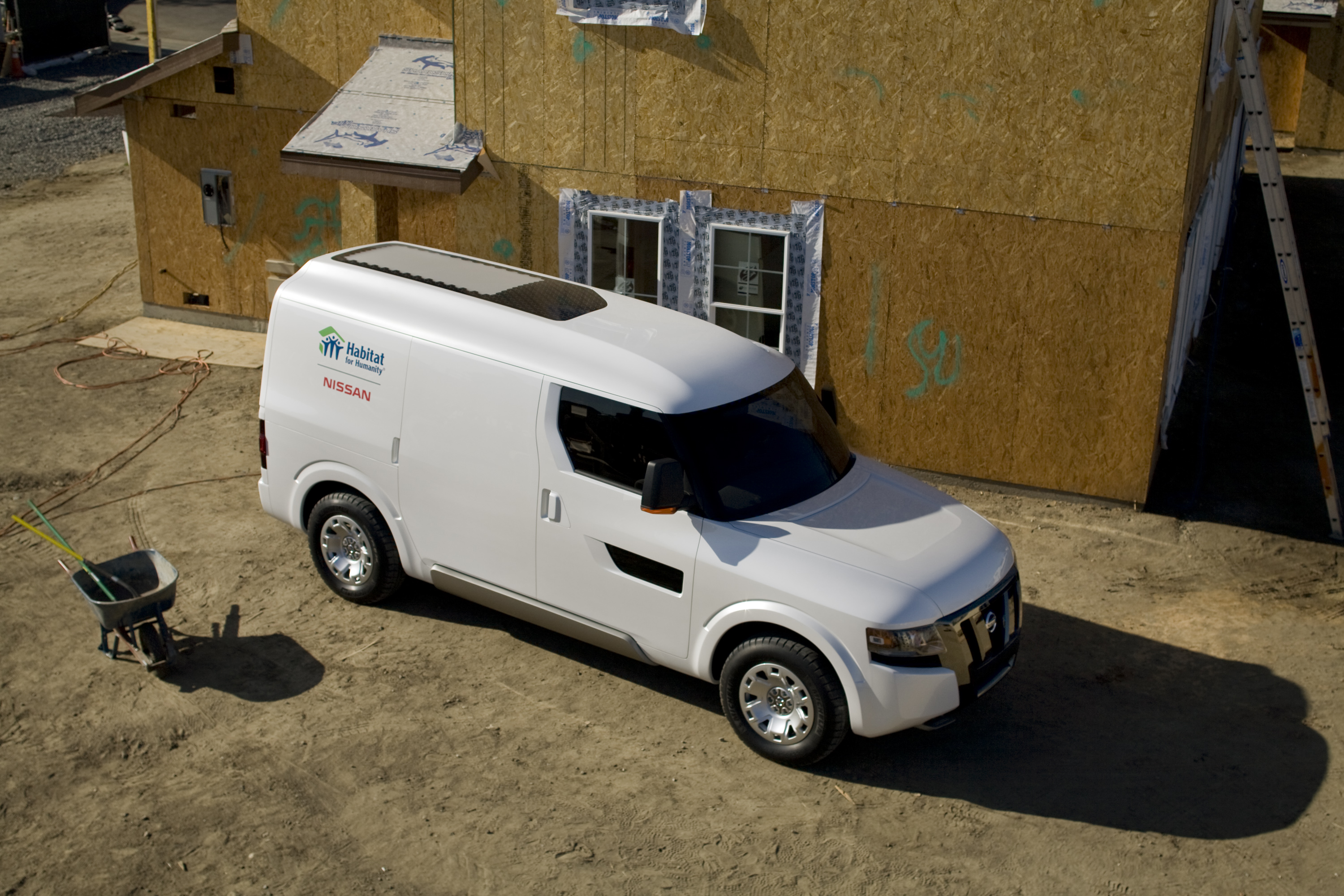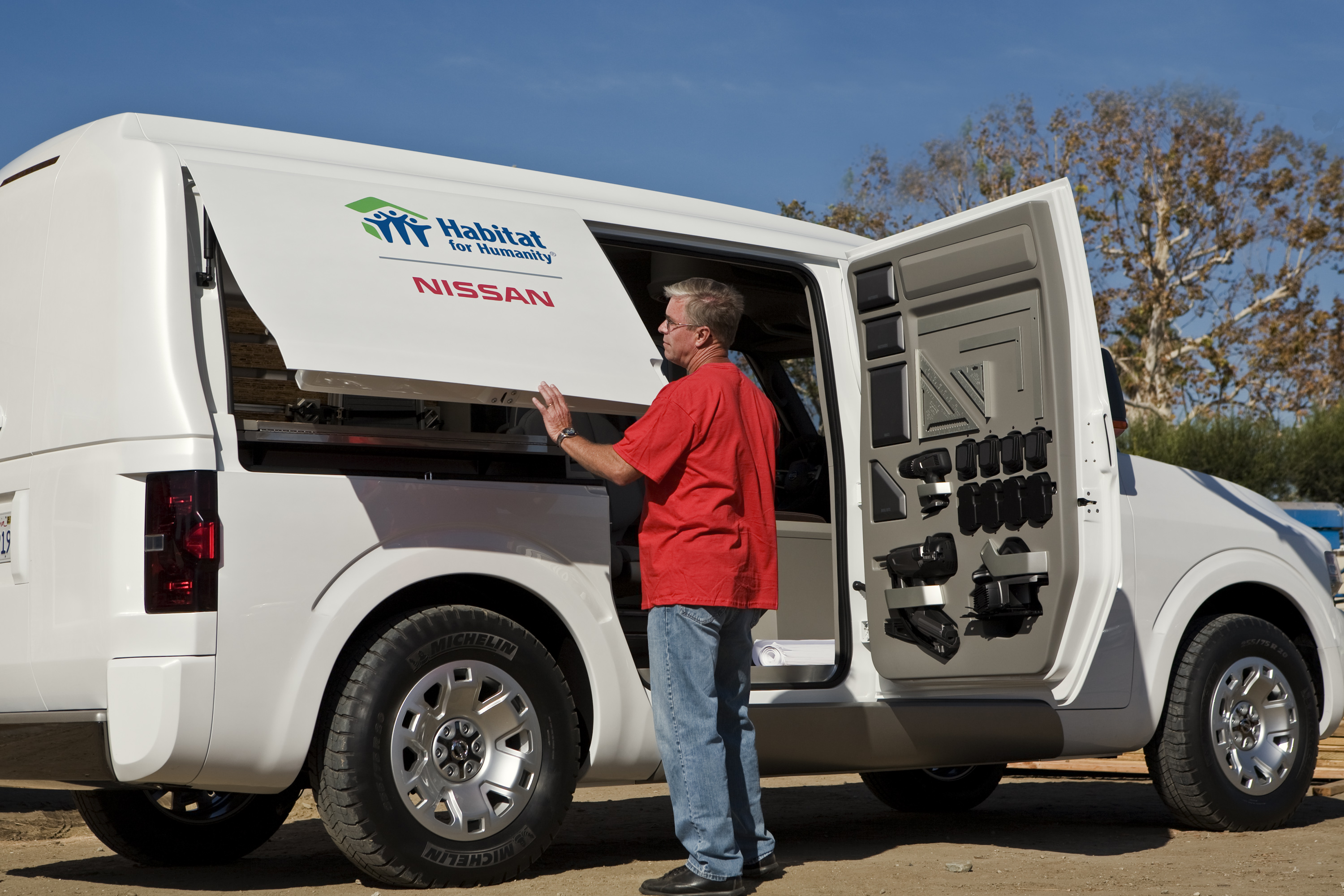 In this configuration, the Nissan NV2500 Concept is designed for construction use. It bears the logo of Habitat for HumanityÃ’ only to illustrate the partnership between Nissan and Habitat. Over the past three years, Nissan has donated $3 million in cash, vehicles and house sponsorships, along with thousands of hours of work volunteered by Nissan employees.