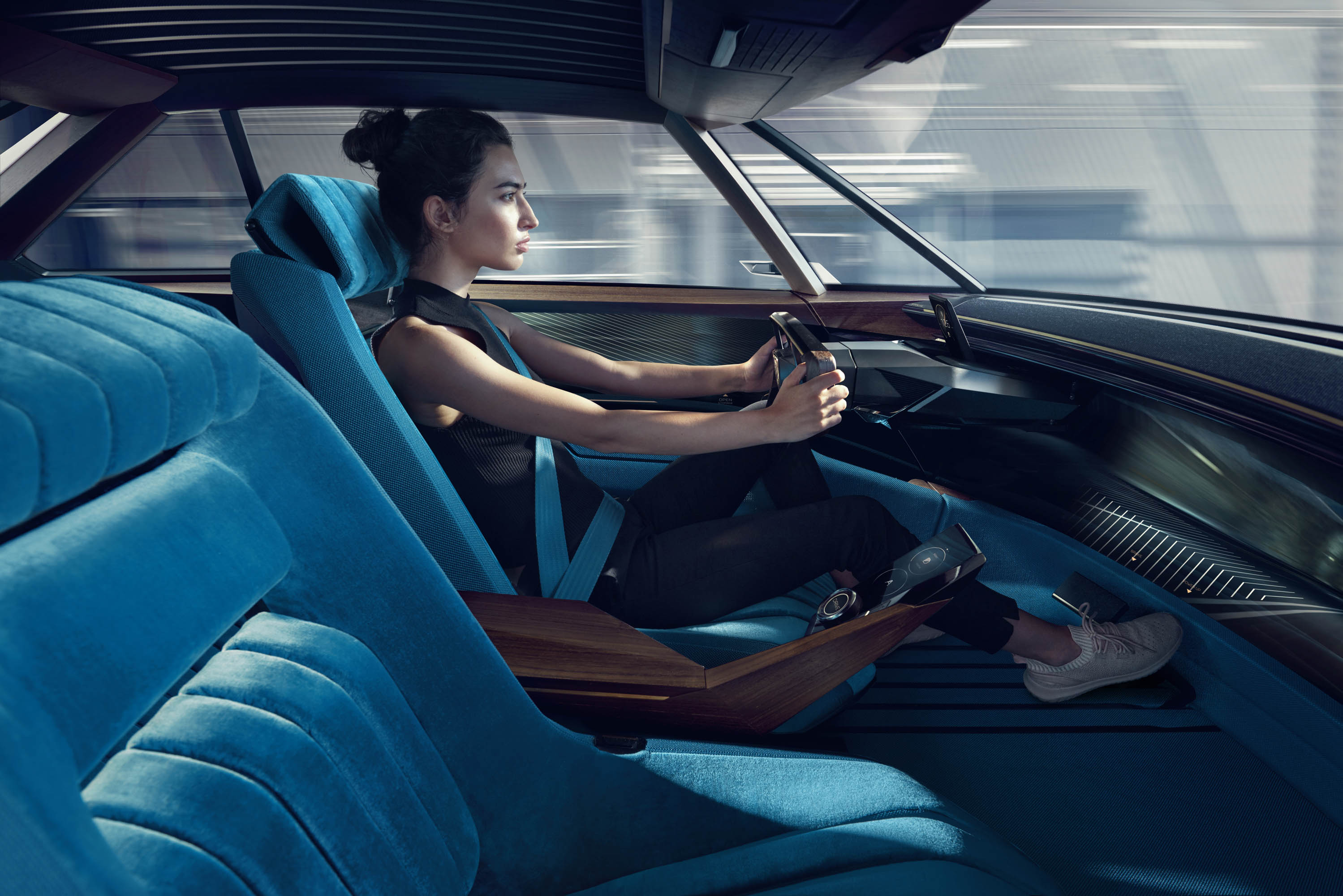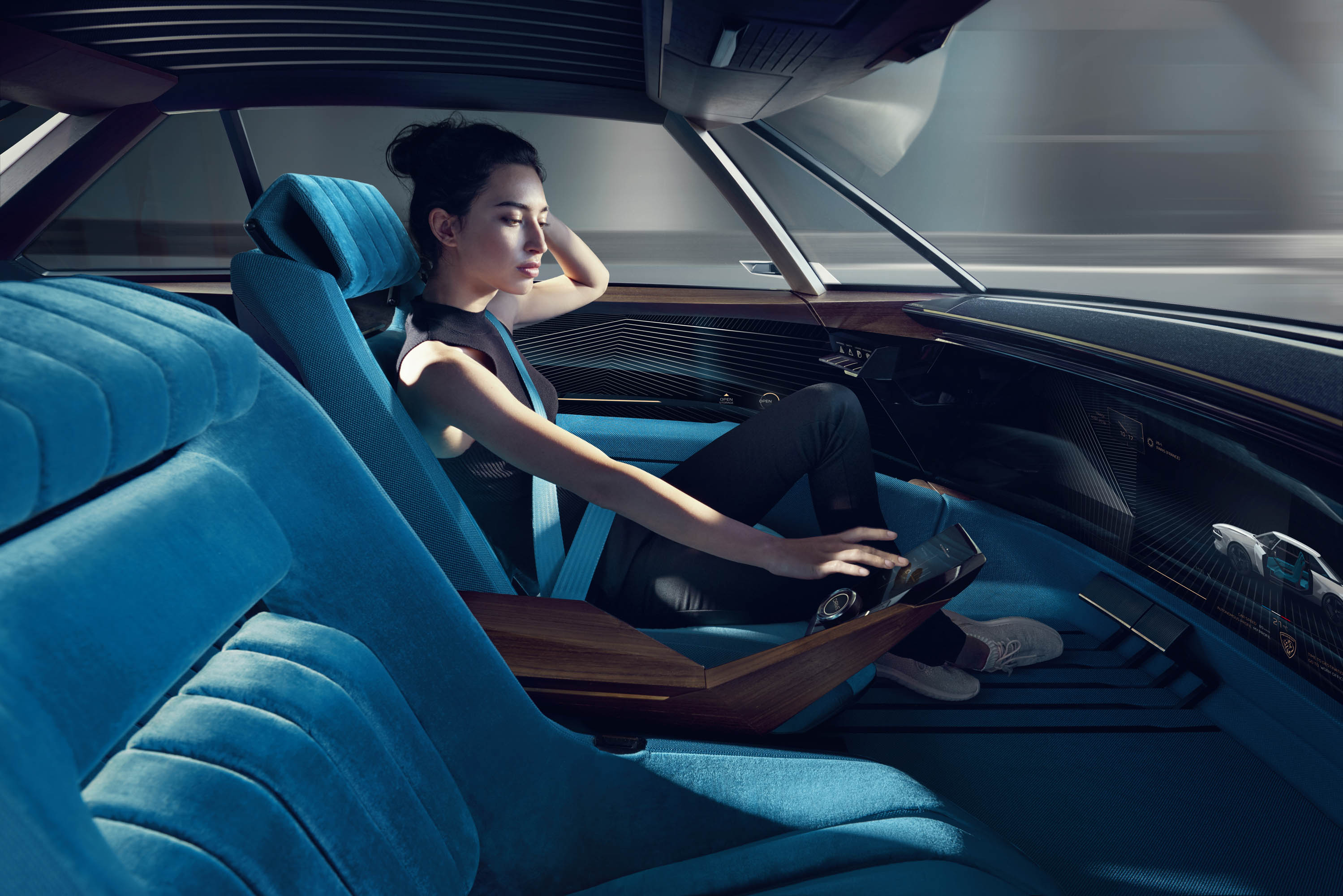 In autonomous mode, the PEUGEOT e-LEGEND CONCEPT interior configuration adapts: