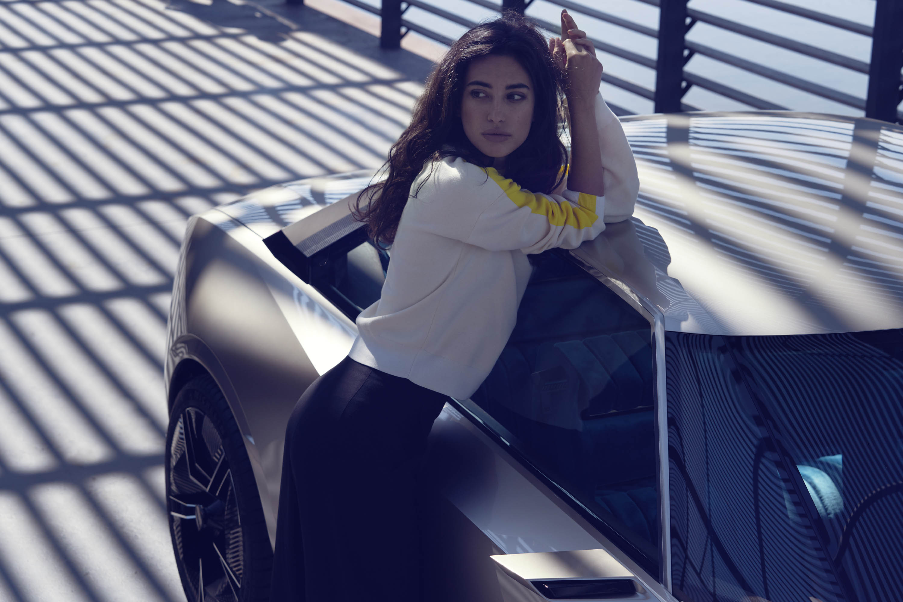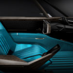 Spread throughout the interior, the digital material (or digital interpretation of real materials) is divided into two major themes: bronze-like line networks or networks of lines imitating cabinetmaking wood. It’s broadcast on 16 screens of different sizes, for example: 49 inches curved under the front helm to the occupants, 29 inches in the doors or 12 inches in each sun visor. Digital materials have been the subject of in-depth reflection to fit perfectly and blend into the passenger compartment. The centre console provides access to the main driving controls through a rotary control and a 6-inch touch screen. To the left of the steering wheel, a digital toggle bar is composed of contextual and configurable commands depending on the driving mode.
