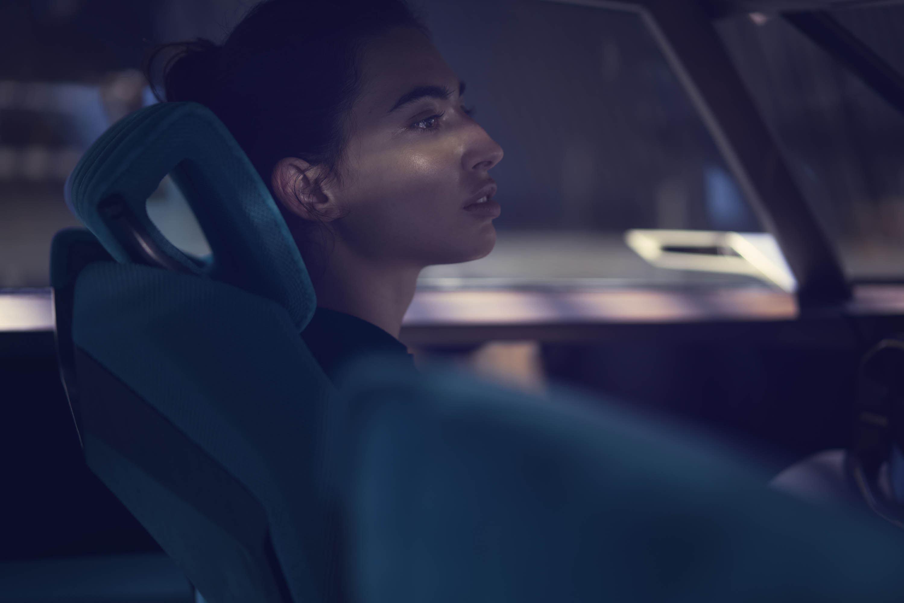 The occupants can then enjoy their favourite hobbies: play the integrated video game or watch a film either in the curved central screen or in each screen built into the sun visors.