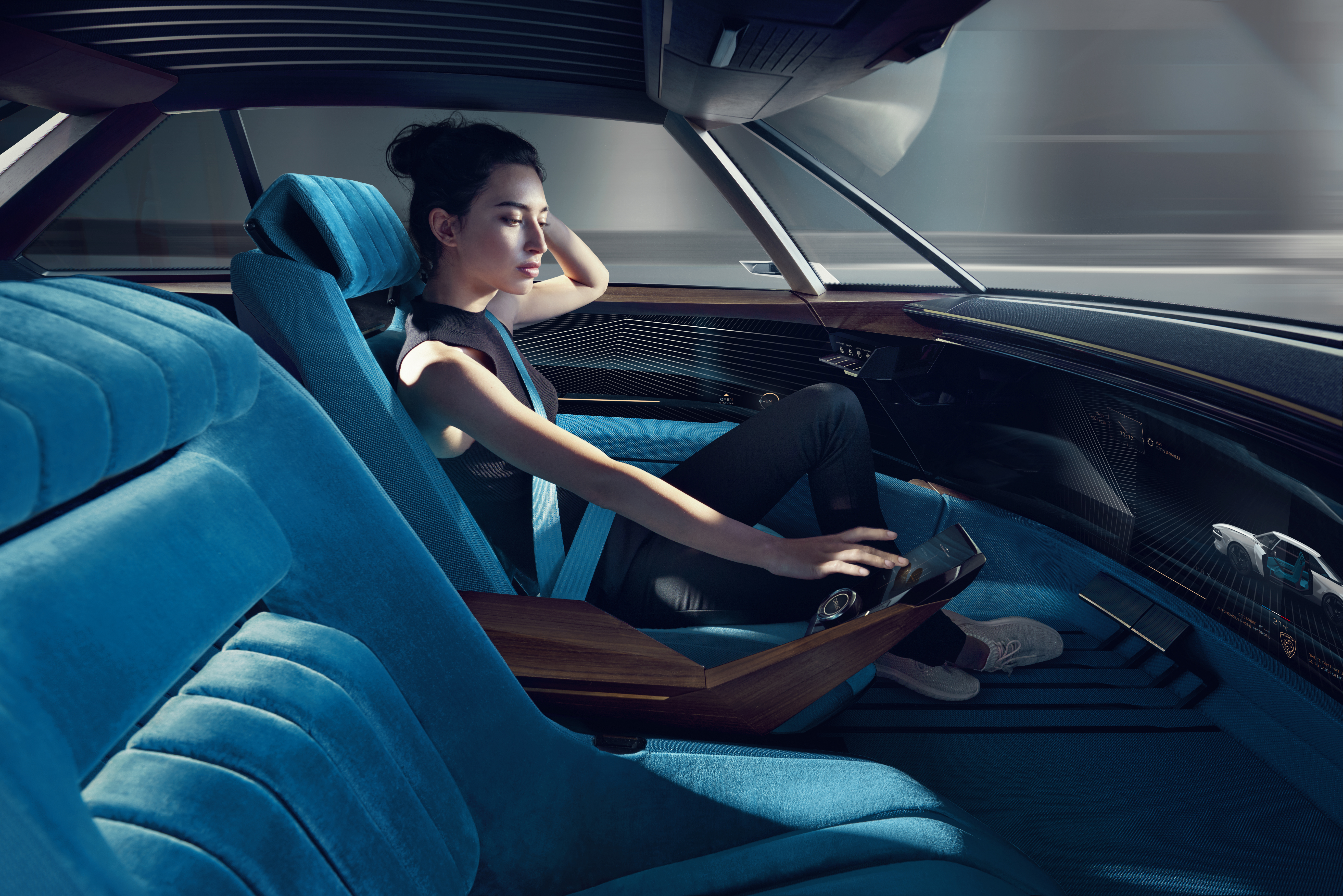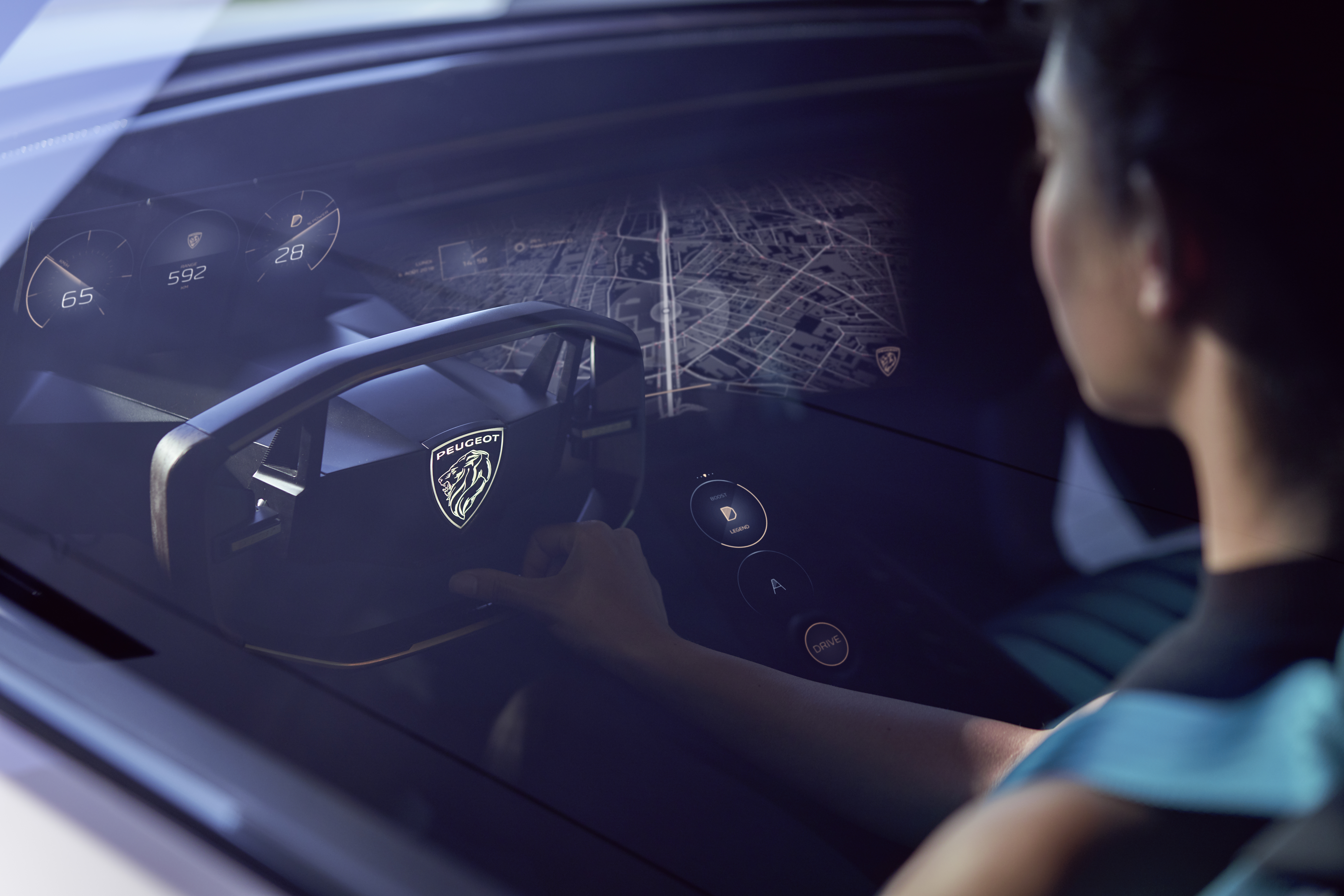 With PEUGEOT e-LEGEND CONCEPT, for us it’s about intensifying and refining the experience of 100% autonomous, electric and connected. The Responsive i-Cockpit is enhanced to offer its guests immersive driving specifically customized for each of the four driving modes available.