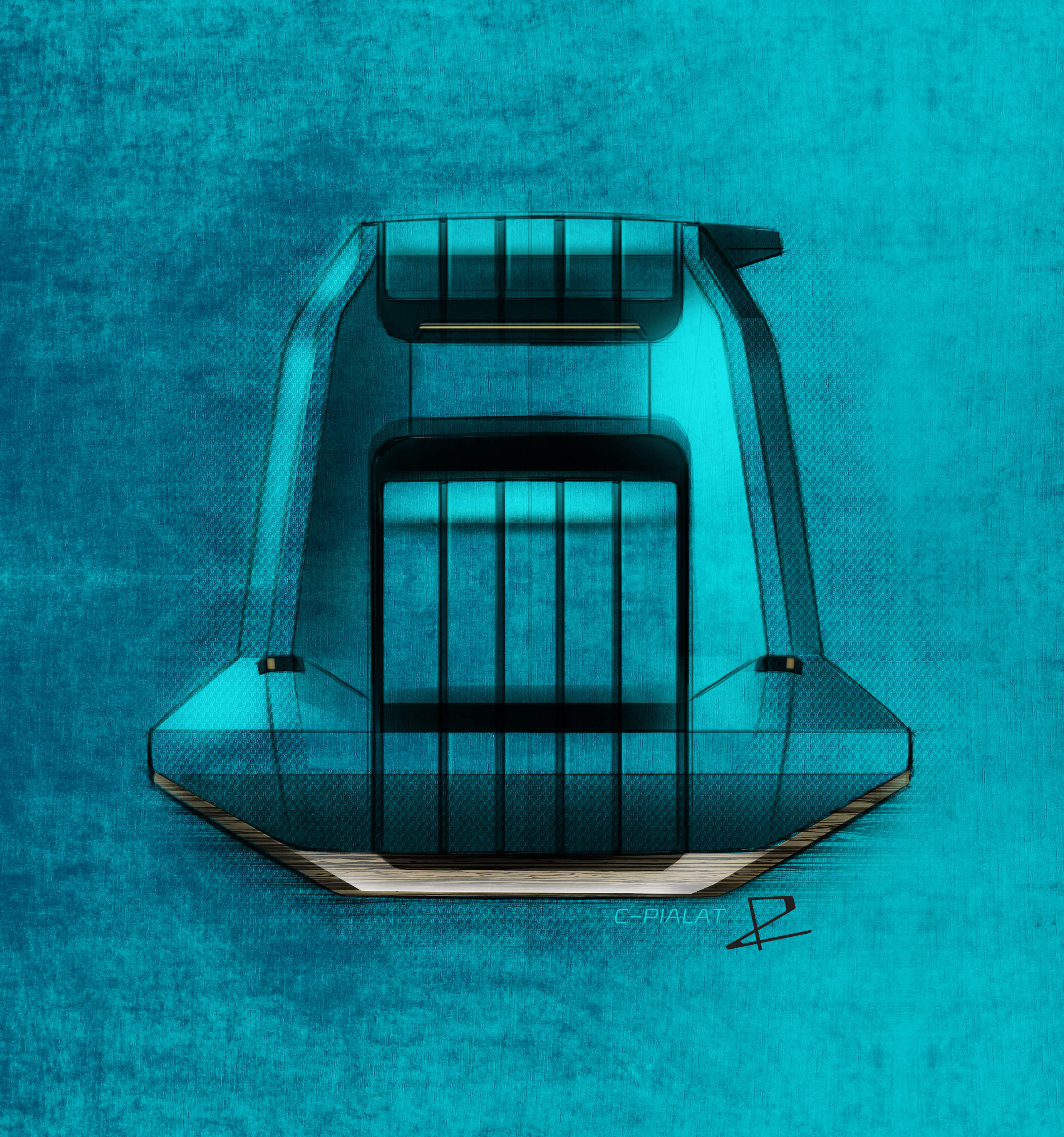 - a cabin, arched towards the rear suspension, with large glazed parts.