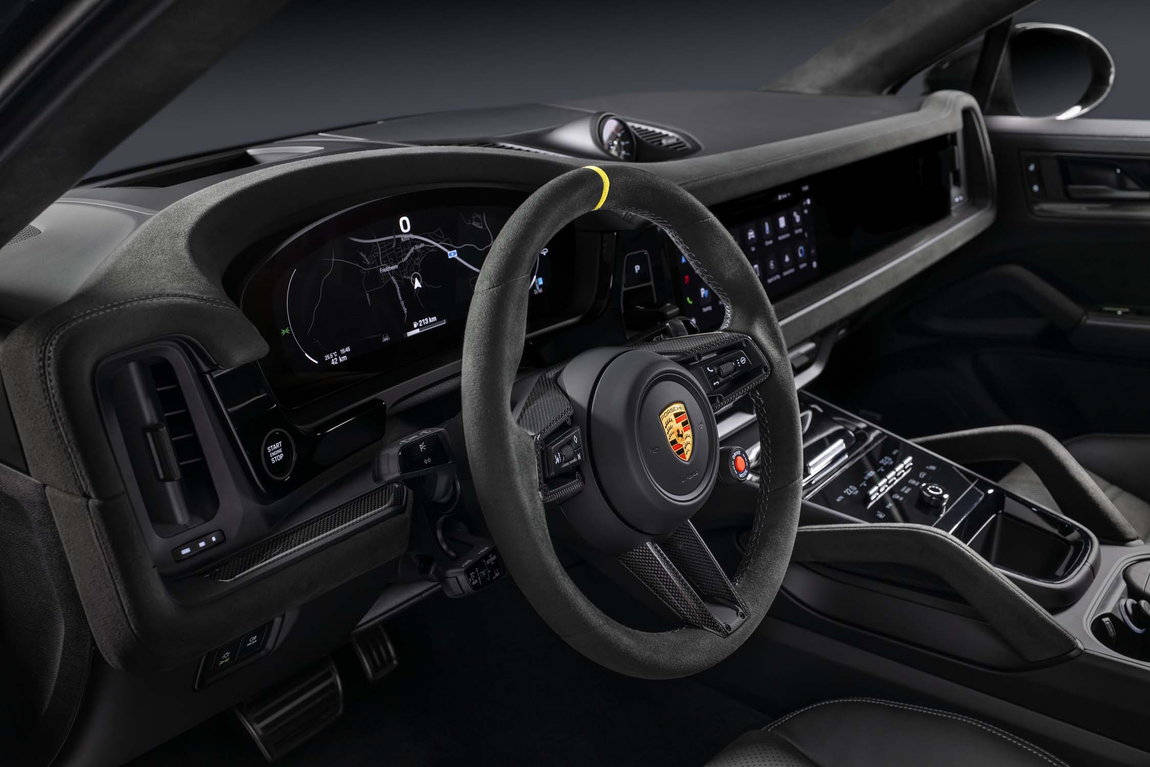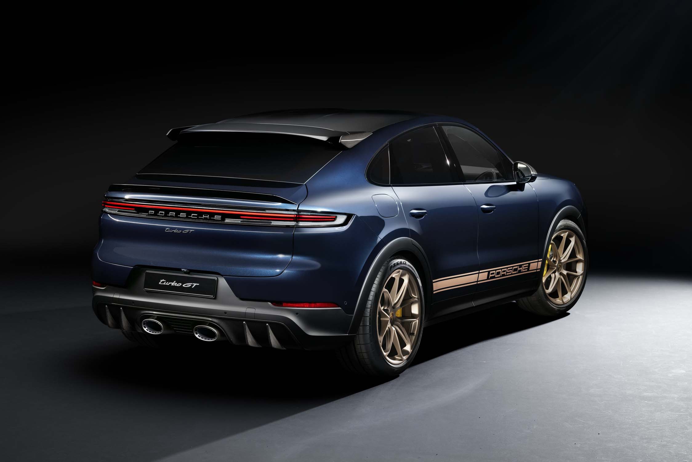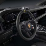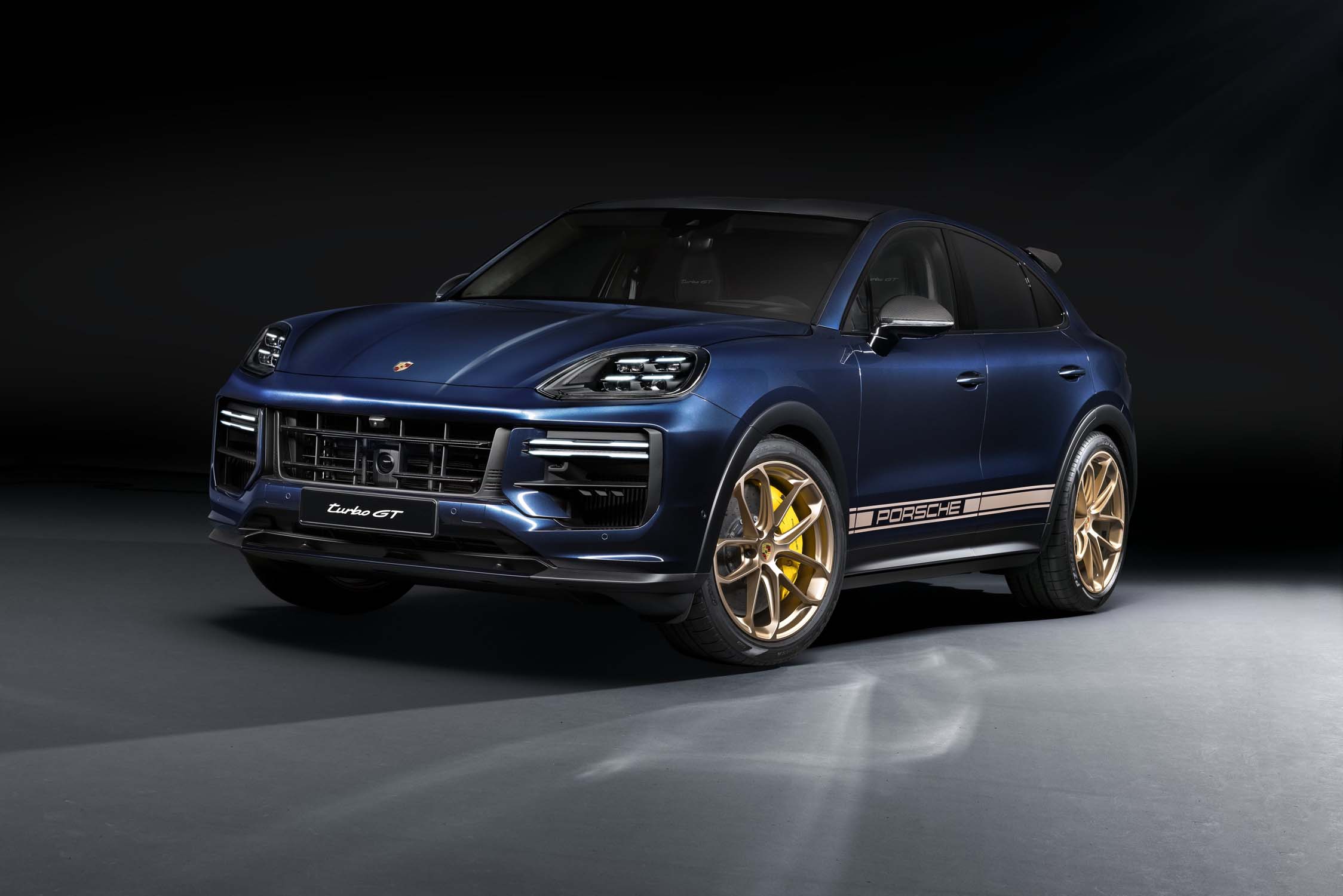 Outside the EU, the Turbo GT designed for maximum on-road performance is still the top model in the Cayenne range in most Porsche markets. It is available exclusively as a coupé and benefits from all the optimisations and innovations of the model series. In addition, the output of the four-litre V8 biturbo engine of the Turbo GT has been increased by 14 kW (19 PS) to 485 kW (659 PS). The Cayenne Turbo GT accelerates from zero to 100 km/h in 3.3 seconds, with a top speed of 305 km/h.