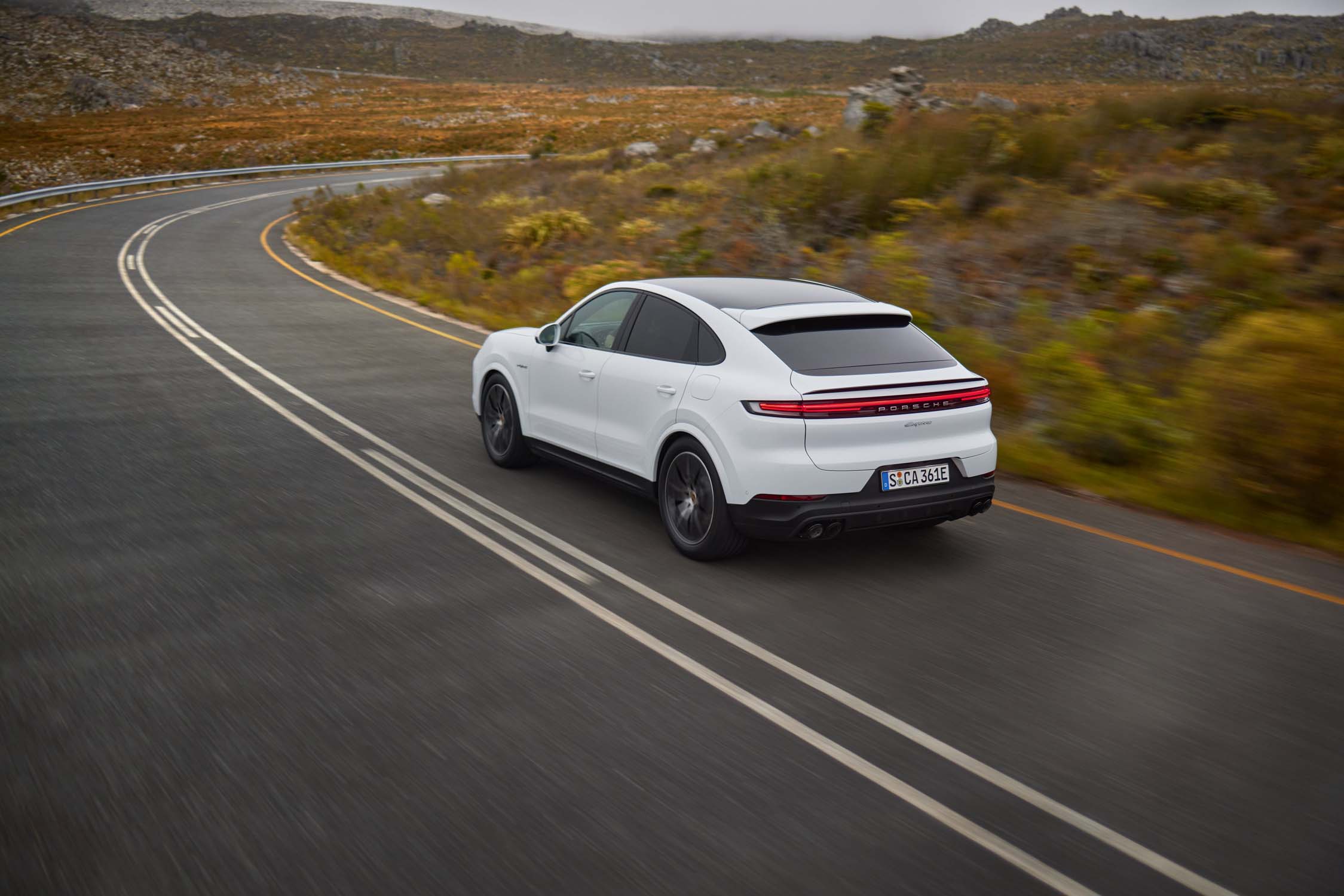 The new Cayenne now has a particularly expressive appearance. A new front end combined with more strongly arched wings, a new bonnet and technically appealing headlights emphasises the vehicle’s width. Three-dimensionally designed tail lights, uncluttered surfaces beneath and a new rear apron with integrated number plate holder characterise the rear end design of the new Cayenne. An expanded colour palette with three new colours, lightweight sports packages saving up to 33 kilograms for the Cayenne Coupé, and a new extensive range of 20, 21, and 22-inch wheels make it possible to individually and dynamically configure the new Cayenne.